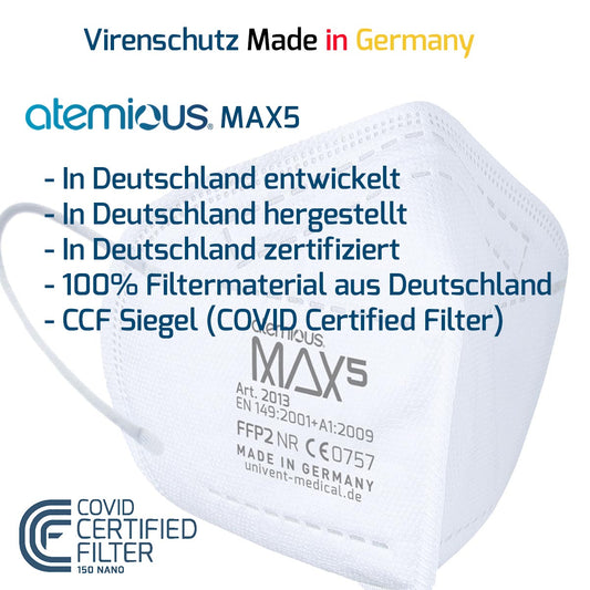 atemious MAX5 FFP2 Atemschutzmaske – Qualität aus Deutschland, einzeln oder lose erhältlich