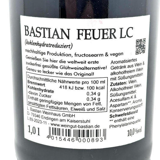 Bastian Feuer LC – Zuckerfreie Glühwein-Alternative rot, kohlenhydratreduziert 1L 10% vol