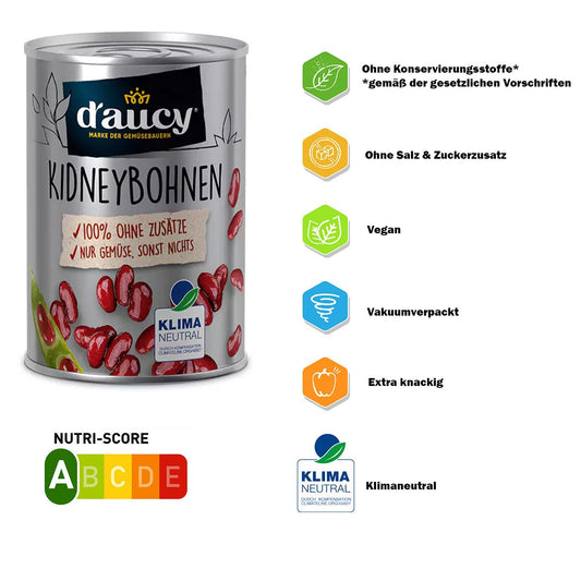 d'aucy Rote Kidneybohnen: Natürliche Vielfalt ohne Salz und Zuckerzusatz