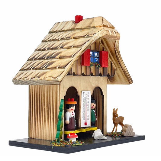 Schwarzwald Wetterstation aus Holz, handgefertigt, 22cm, Thermometer, Figuren