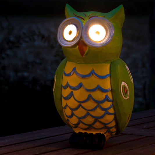 Große Solar Eule: Tagsüber aufladen, nachts leuchten! Grünes/gelbes Licht