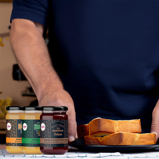 FeineHeimat Männer Konfitüren Set 3 Konfitüren Kirsch-Whisky, Bier&Hefeweizen á 330g