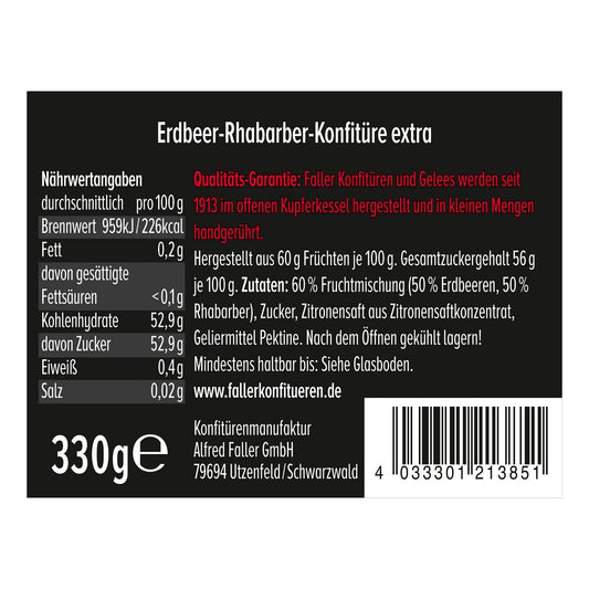 Faller Erdbeer-Rhabarber Konfitüre: Hausgemachter Genuss, 60% Frucht, 330g