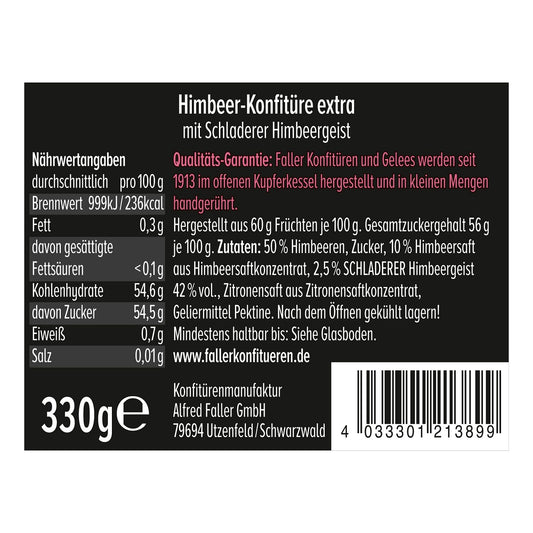 Faller Himbeer-Konfitüre extra mit Himbeergeist: Hausgemachter Genuss 330g