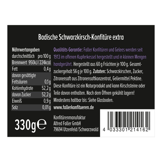 Faller Badische Schwarzkirsch-Konfitüre Extra · 60 % Frucht · 330 g