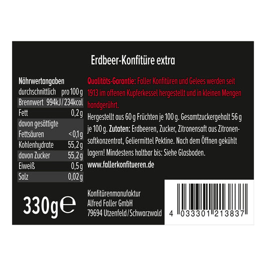 Faller Erdbeer-Konfitüre Extra aus dem Schwarzwald · 60 % Frucht · 330 g