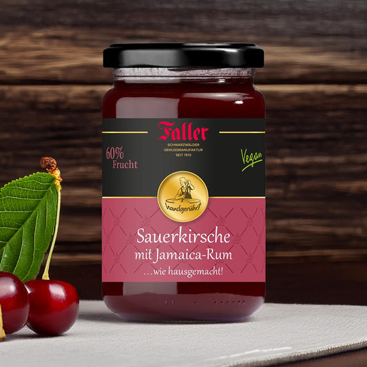 Faller Sauerkirsch-Konfitüre mit Jamaica-Rum: Hausgemachter Genuss, 60% Frucht, 330g