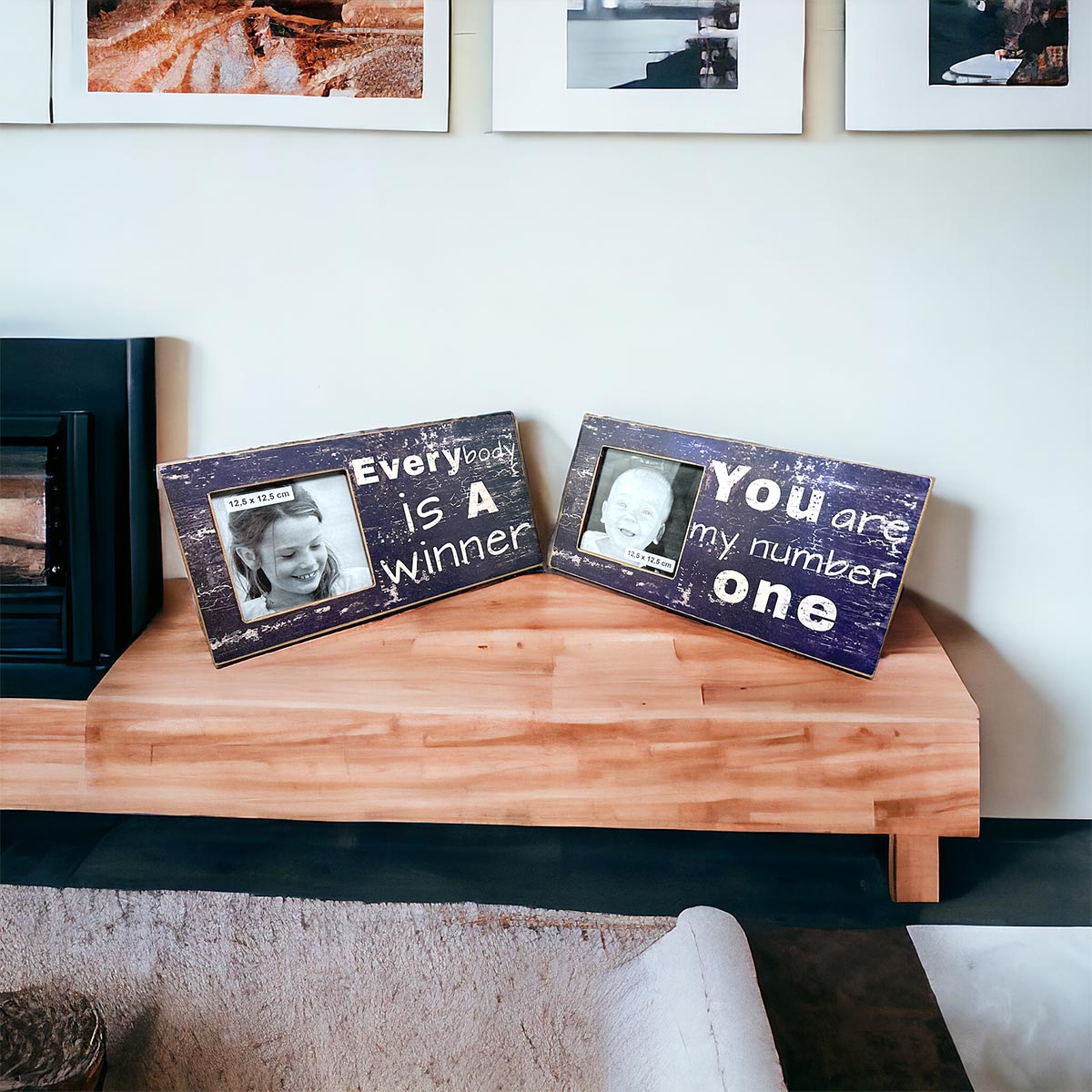 Mit diesen Bilderrahmen von Boltze können Sie Ihre Liebsten auf eine schöne Art und Weise würdigen. Die Rahmen sind mit den Sprüchen "You are my number one" und "Everybody is a winner" bedruckt.