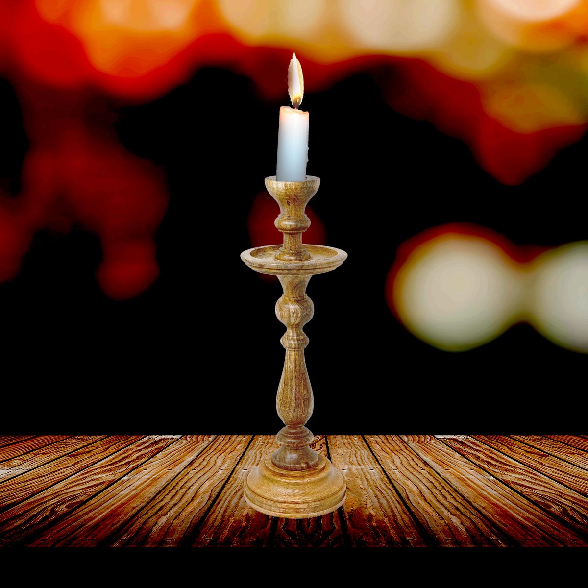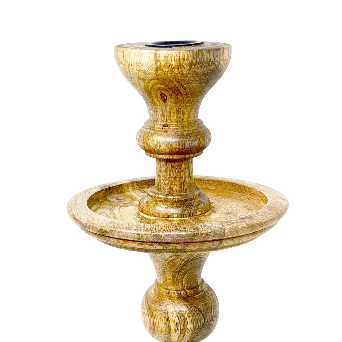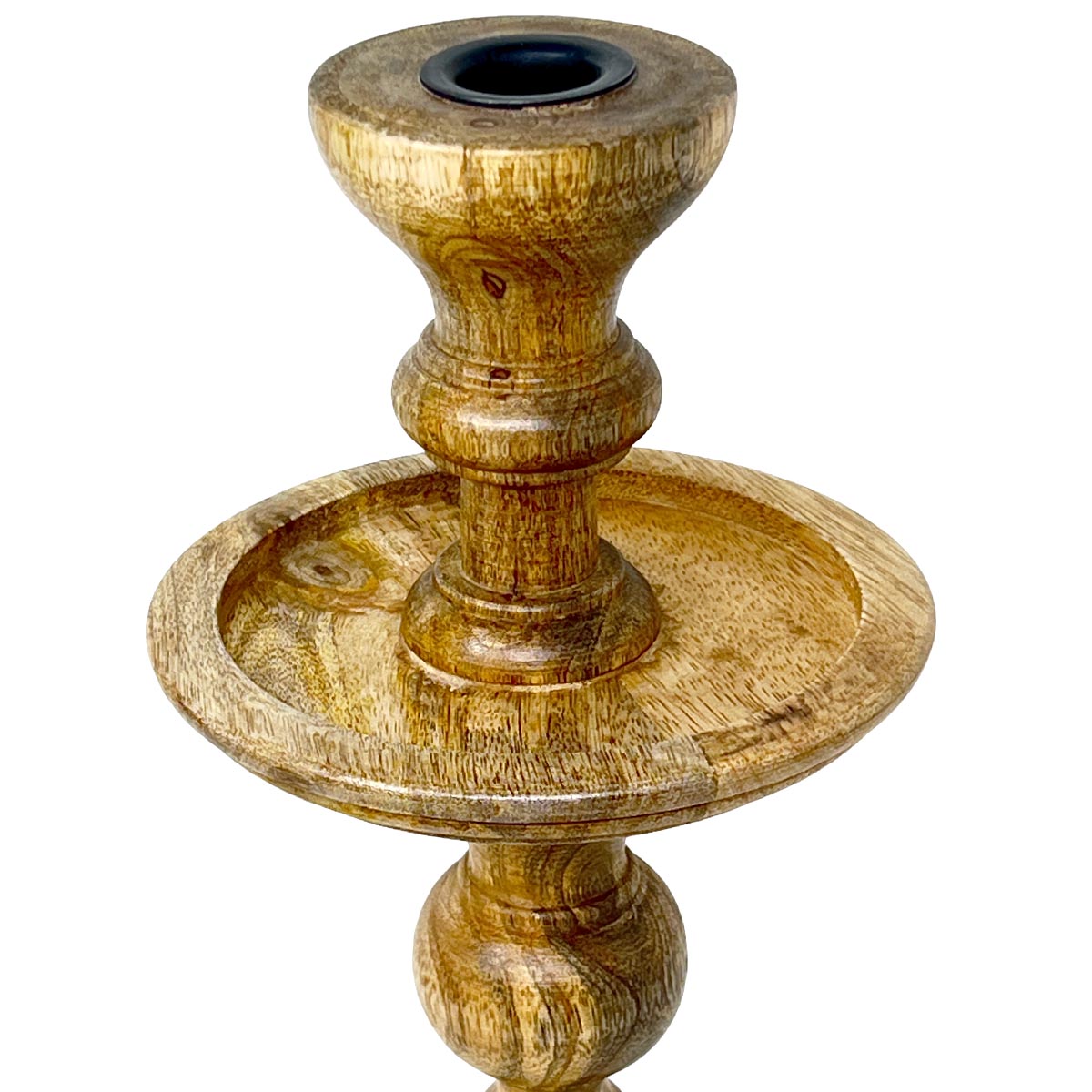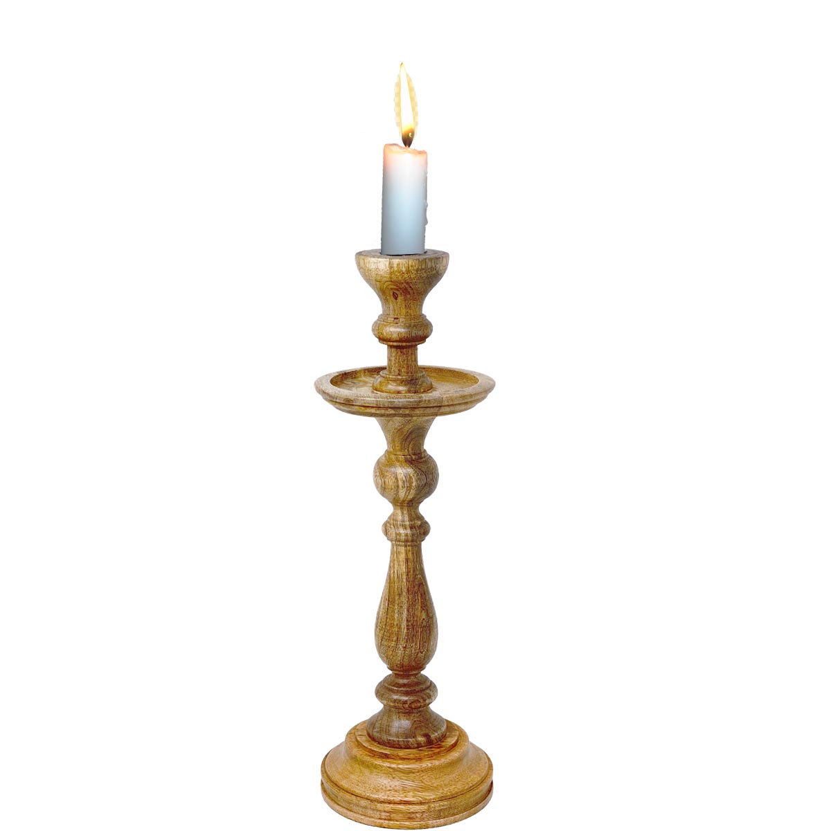 Kerzenständer 'Mia' - Nostalgischer Holz-Kerzenhalter, Geschnitzt und Schön, Helles Holz, 12 x 41 cm (ø x H), Hochwertige Verarbeitung