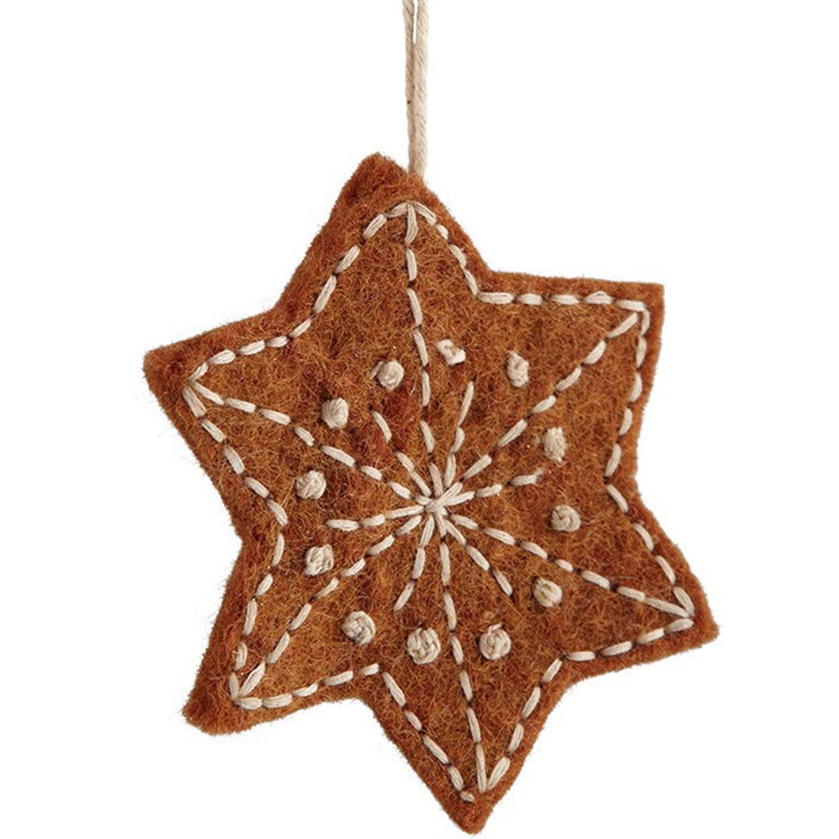 HÜBSCH Hänger 'Stern' in Lebkuchenoptik - Filzanhänger für festliche Dekoration, 11 cm Höhe