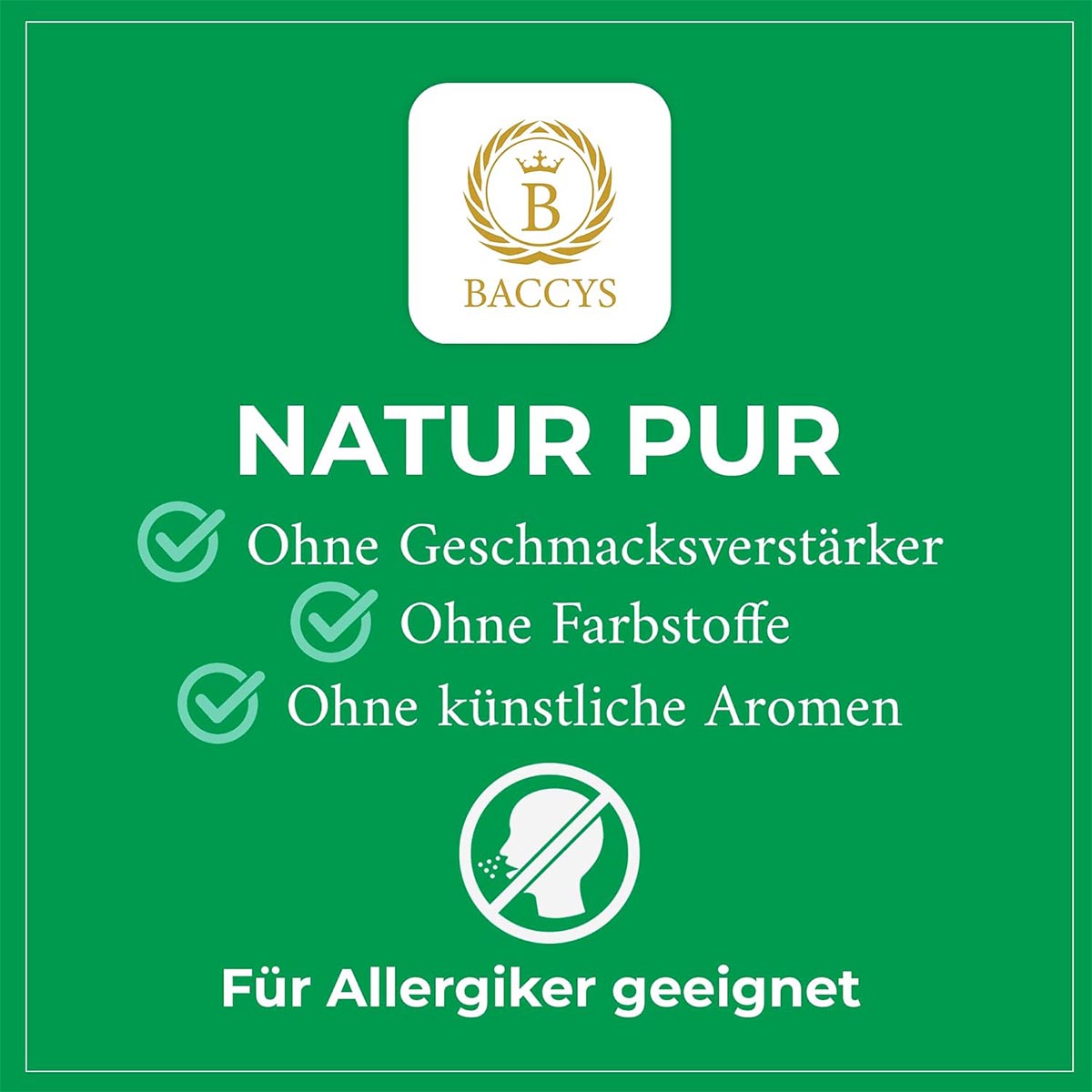 VEGAN: Das natürliche Aroma von BACCYS ist 100% vegan, zuckerfrei, fettfrei und ohne künstliche Farbstoffe. Das Aroma kommt aus Deutschland und ist völlig natürlichen Ursprungs.