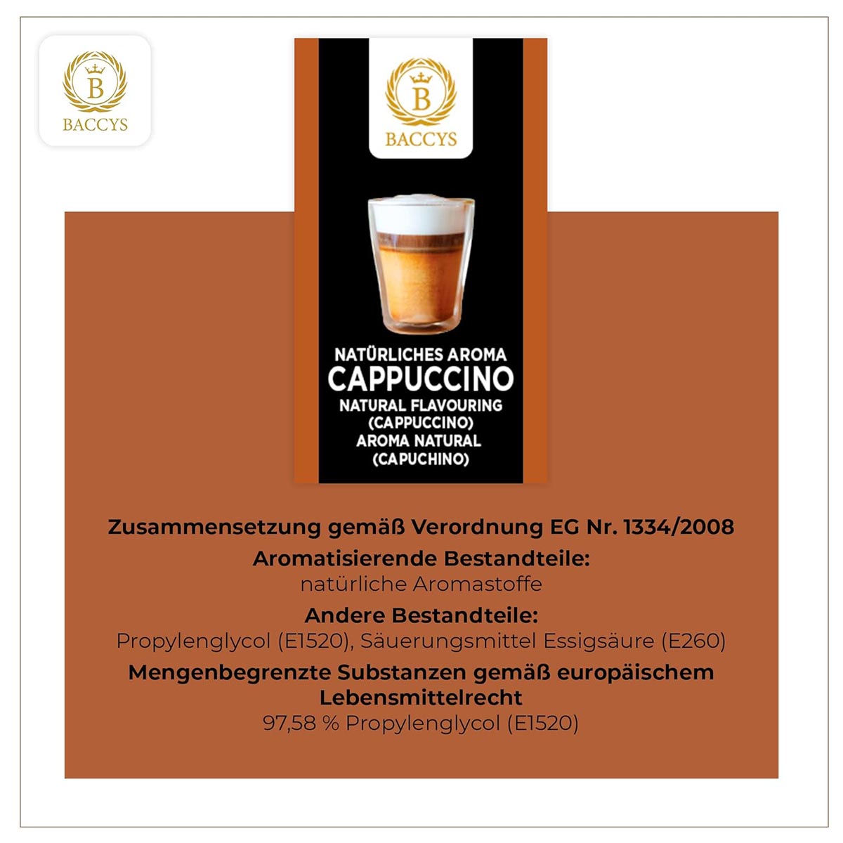 Natürlich und Vegan: Wir bei BACCYS legen großen Wert auf Natürlichkeit und Nachhaltigkeit. Unsere Aromen sind rein pflanzlich und zu 100% vegan, sodass Sie sich ohne Bedenken in kulinarische Experimente stürzen können.