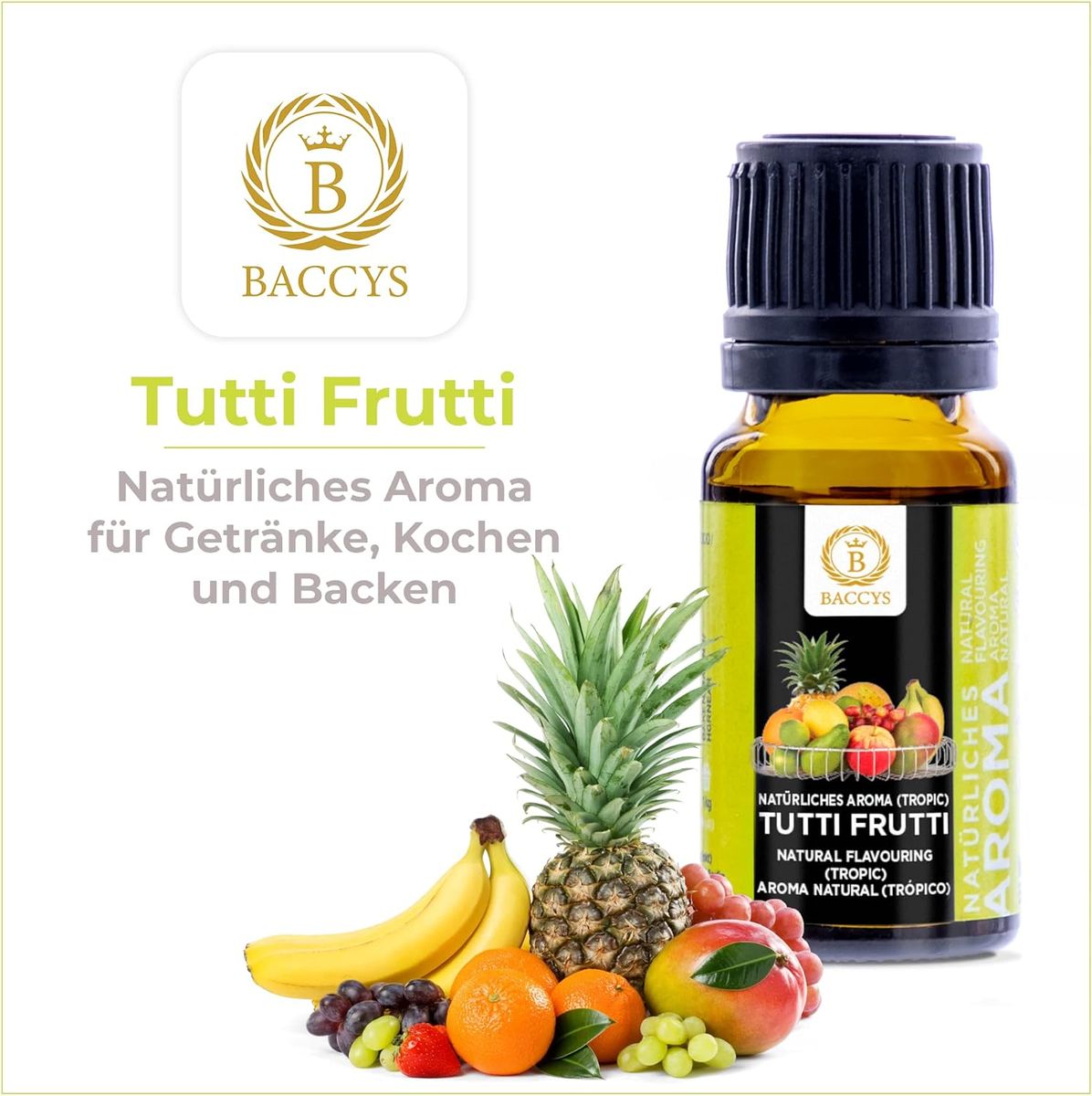 Erleben Sie mit BACCYS Natürlichem Aroma eine Welt voller Geschmacksmöglichkeiten. Perfektionieren Sie Ihre kulinarischen Kreationen und verwöhnen Sie Ihre Sinne mit diesen köstlichen, natürlichen Aromen – ein unverzichtbares Accessoire für alle Hobbyköche und Genießer.
