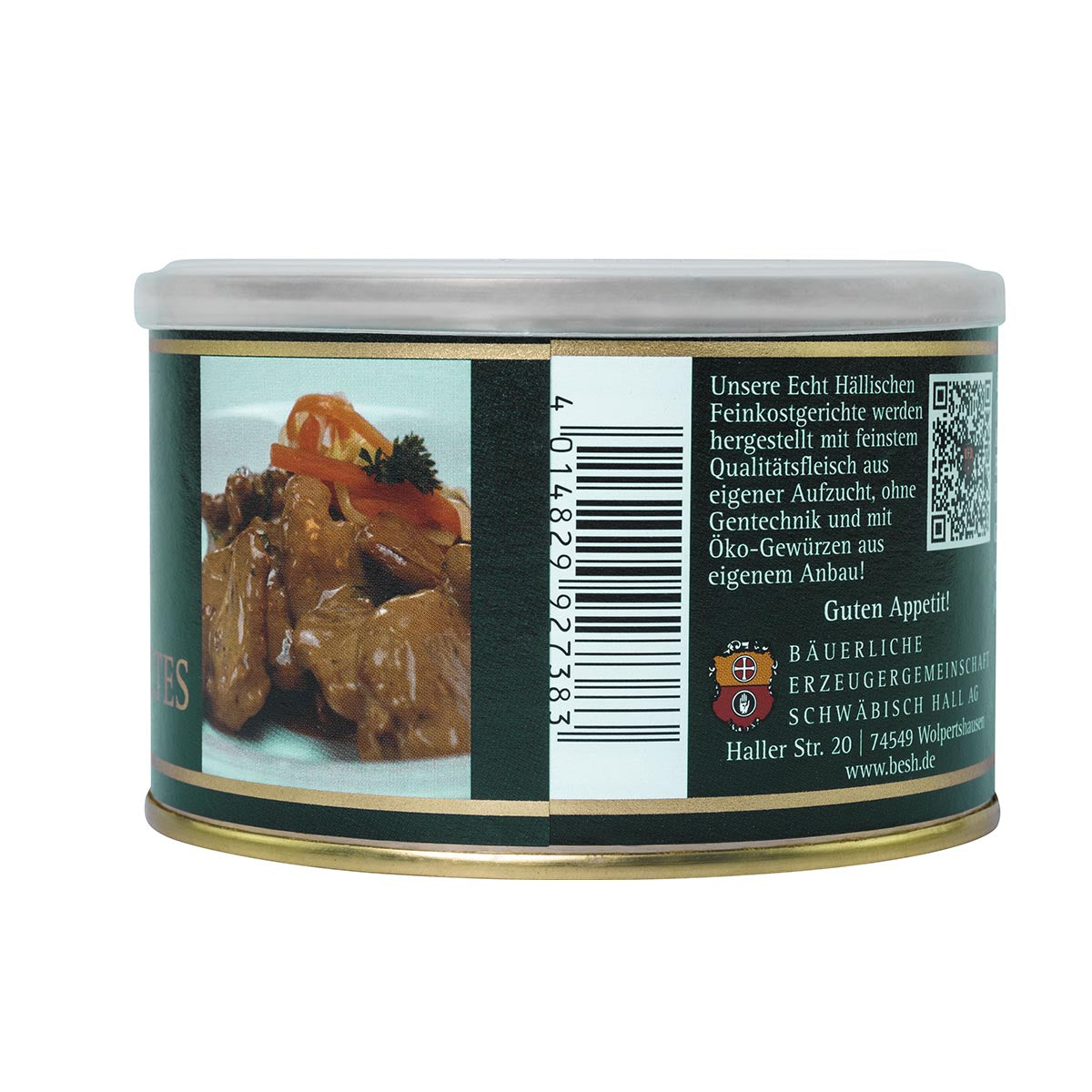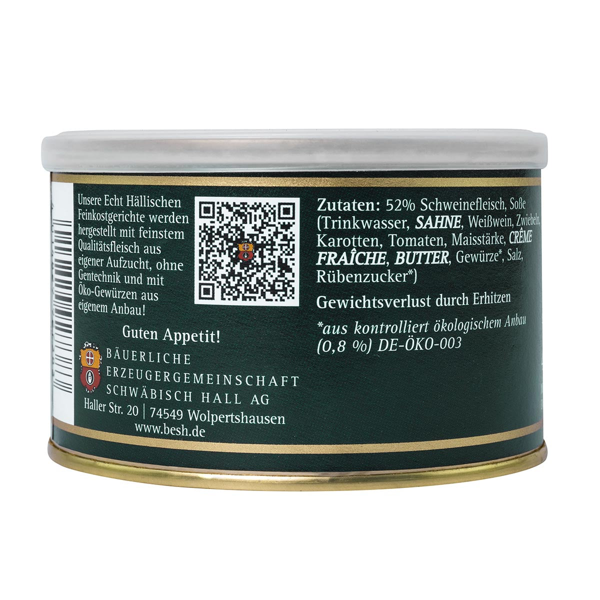 Tauchen Sie ein in die herzhafte Welt der schwäbischen Küche und entdecken Sie die unvergleichliche Qualität und den einzigartigen Geschmack unseres Echt Hällischen Sahnegeschnetzelten. Gönnen Sie sich noch heute ein Stück schwäbische Tradition und lassen Sie sich von einem kulinarischen Erlebnis verführen, das Sie so schnell nicht vergessen werden.