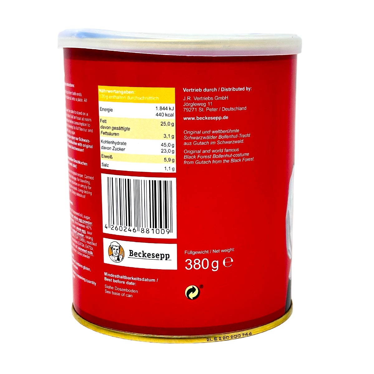 Entdecken Sie den unwiderstehlichen Geschmack des Beckesepp Schwarzwälder Kirschkuchens in der praktischen Dose! Diese köstliche Delikatesse ist nicht nur ein Genuss für den Gaumen, sondern auch das perfekte Geschenk für jeden Anlass.