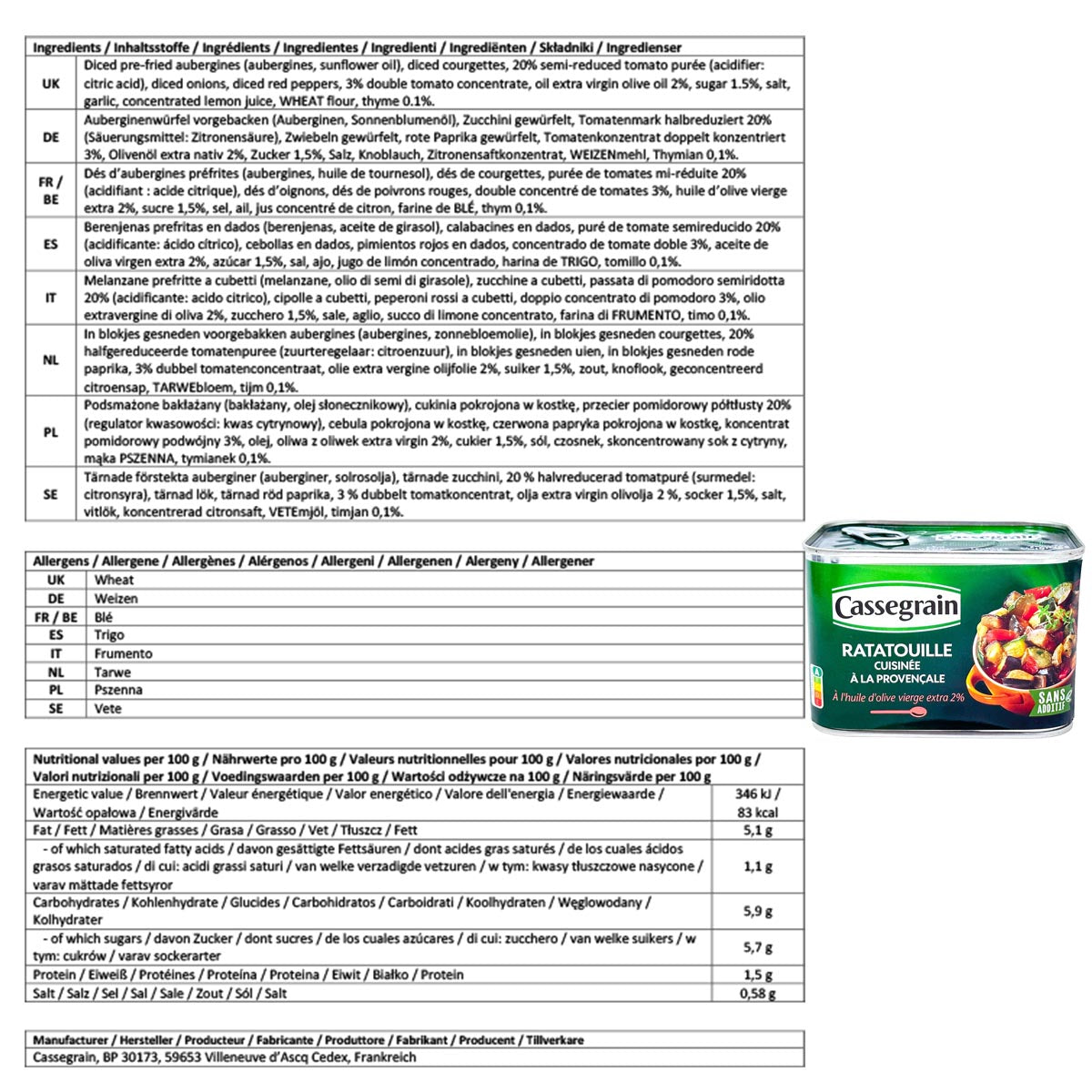 Bei Cassegrain steht Qualität an erster Stelle. Das Gemüse wird sorgfältig ausgewählt und zum optimalen Reifezeitpunkt geerntet, um sicherzustellen, dass jeder Löffel dieser Ratatouille voller Geschmack ist. Die Verwendung von hochwertigen, natürlichen Zutaten garantiert ein Produkt, das nicht nur köstlich, sondern auch gesund ist.