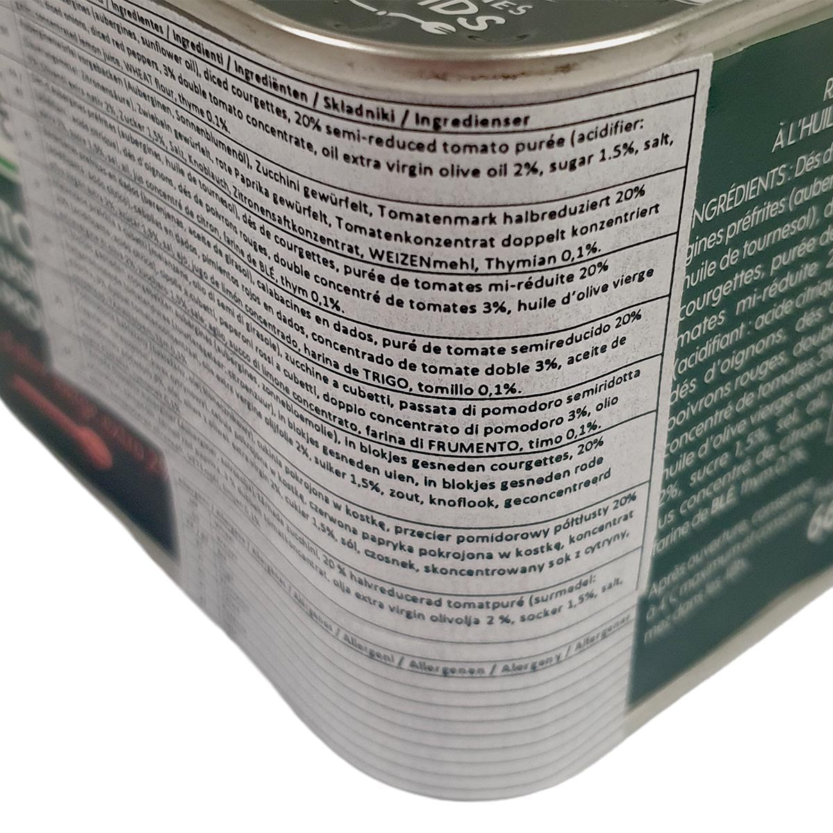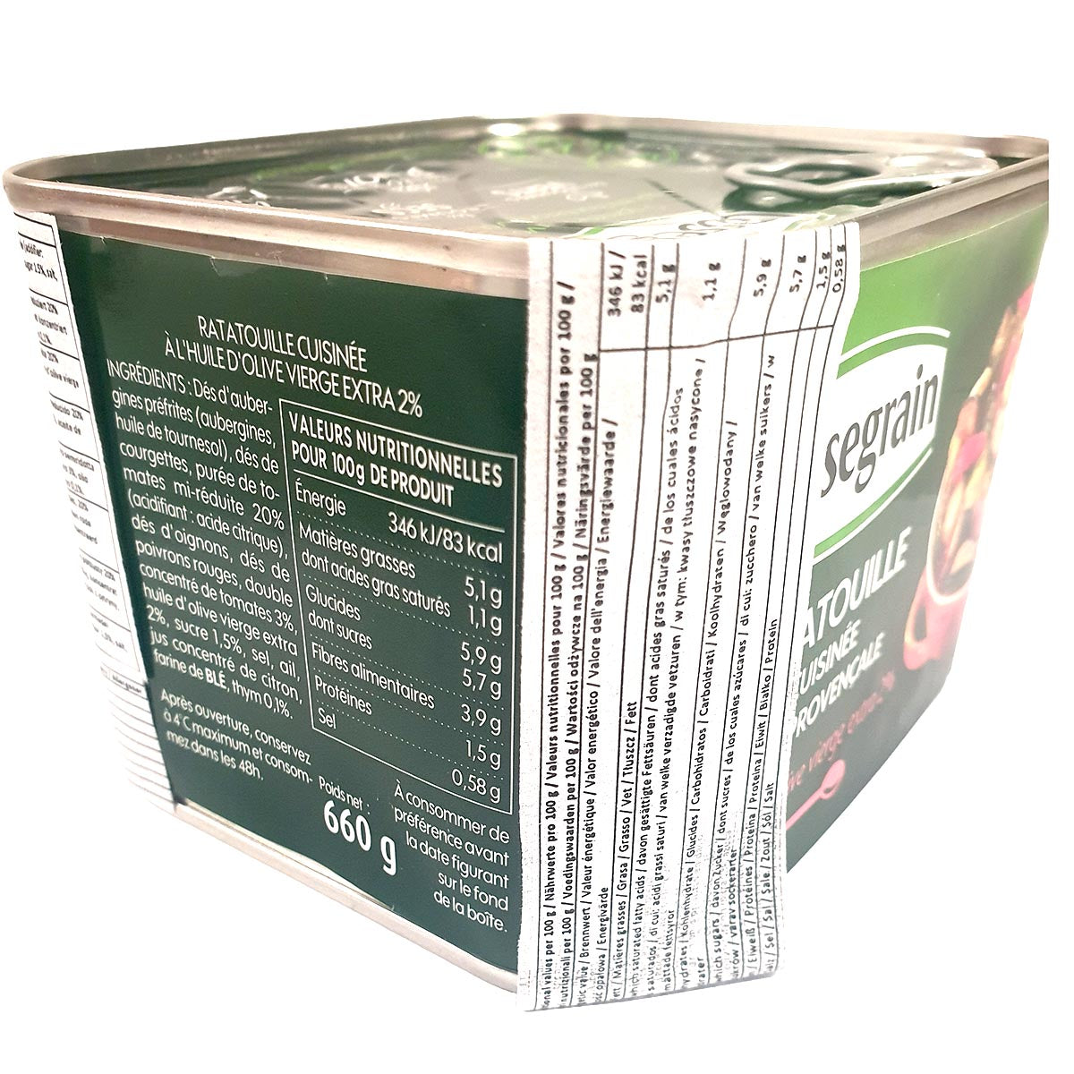 Die Cassegrain Ratatouille Cuisinée à la Provençale wird in einer praktischen Dose geliefert, die die Frische und Qualität des Produkts bewahrt. Jede Dose enthält 660 Gramm Ratatouille, perfekt portioniert für eine köstliche Mahlzeit.