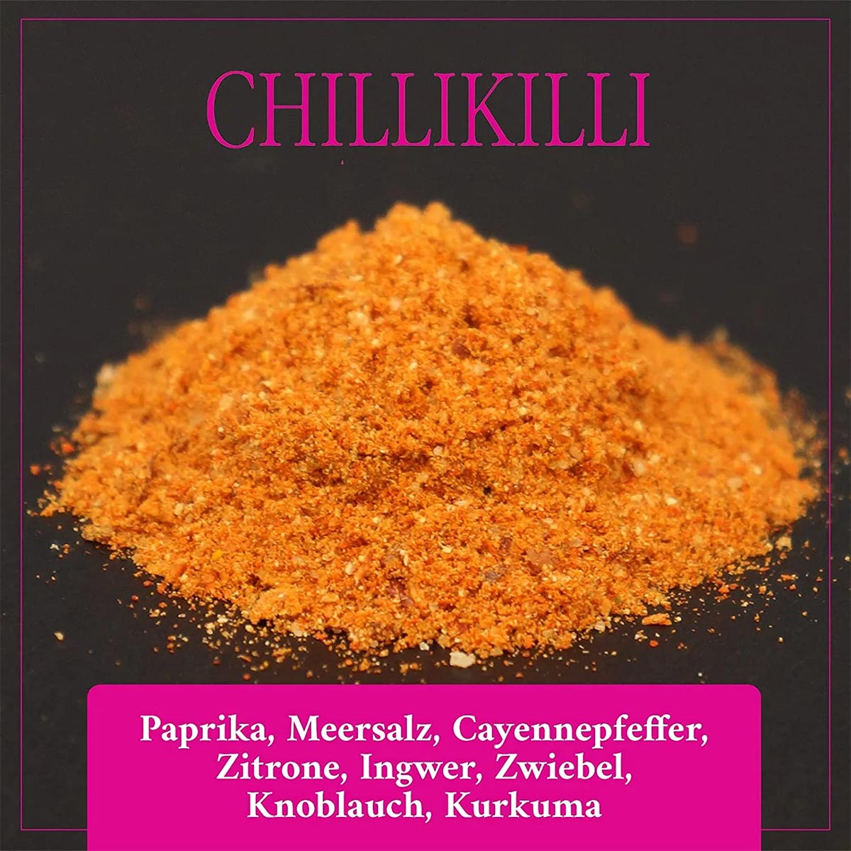 Inhaltsstoffe: Paprika, Cayennepfeffer, Paprika gemahlen, Koriander, Galgant, Zitrone, Meersalz, Ingwer, Knoblauch, Zitronengras, Traubenzucker, Zwiebel