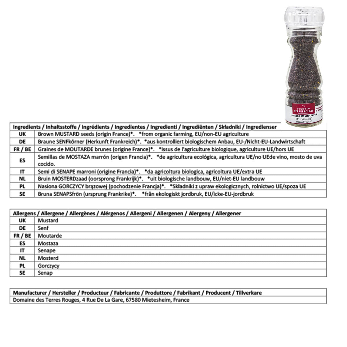 - Zutaten: Braune SENFkörner (Herkunft Frankreich)*. *aus kontrolliert biologischem Anbau, EU-/Nicht-EU-Landwirtschaft