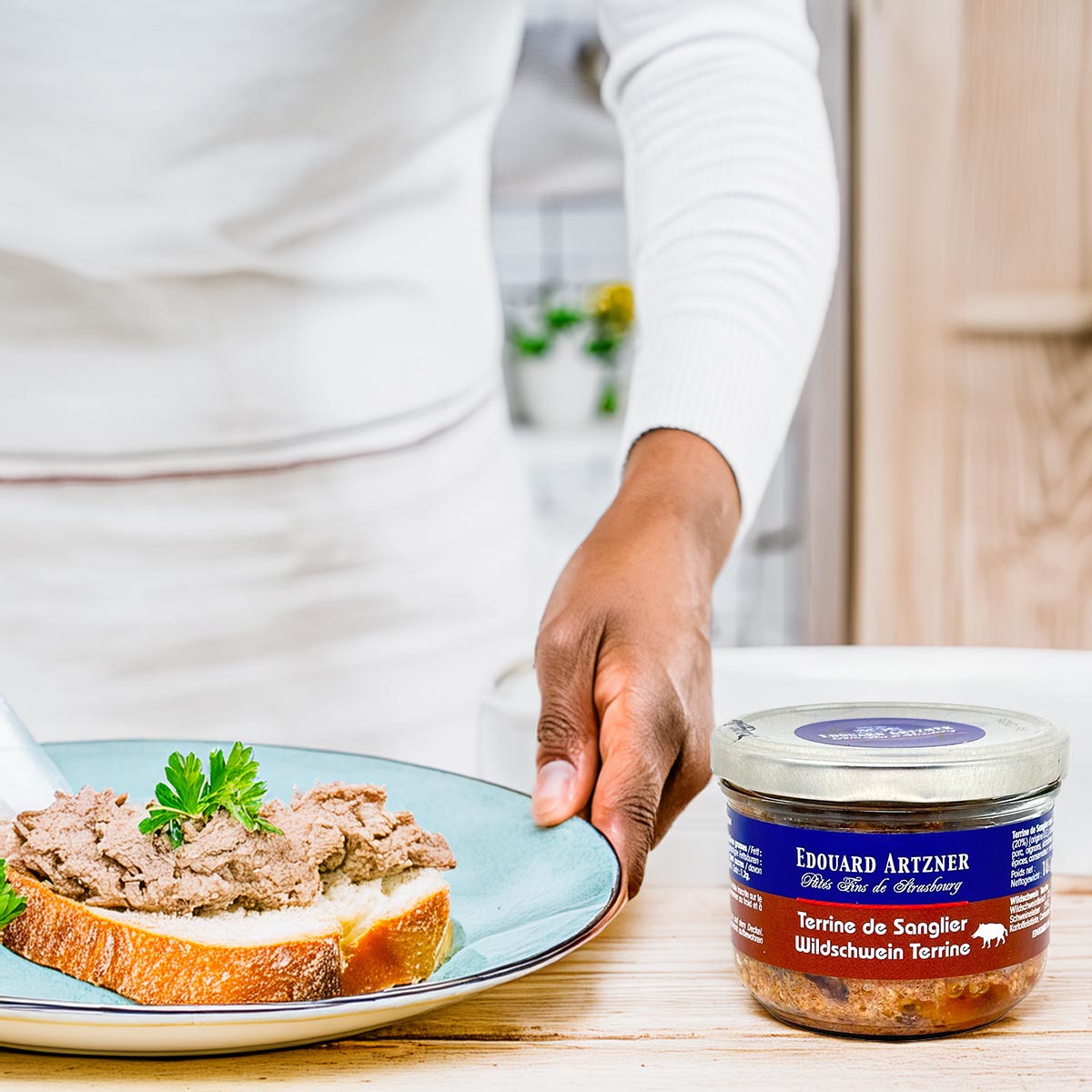 Bestellen Sie jetzt und lassen Sie sich von der feinen Delikatesse der Edouard Artzner Wildschweinterrine mit Kastanien verzaubern!