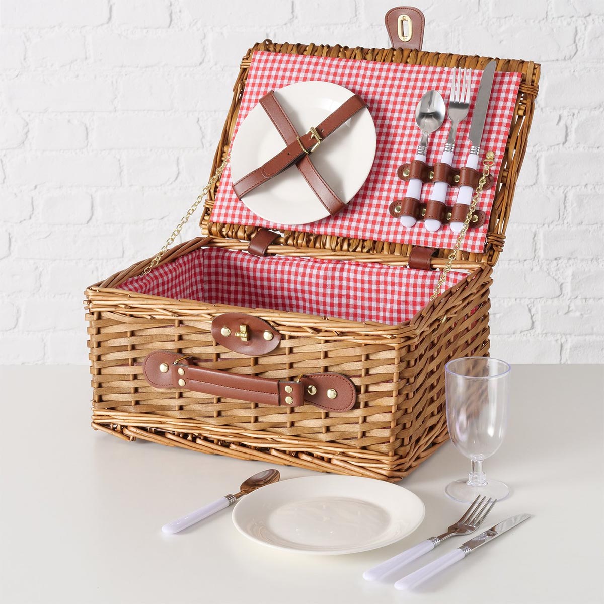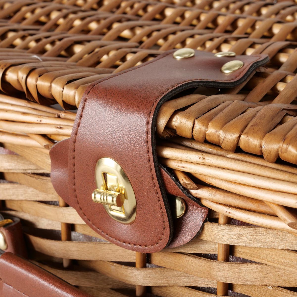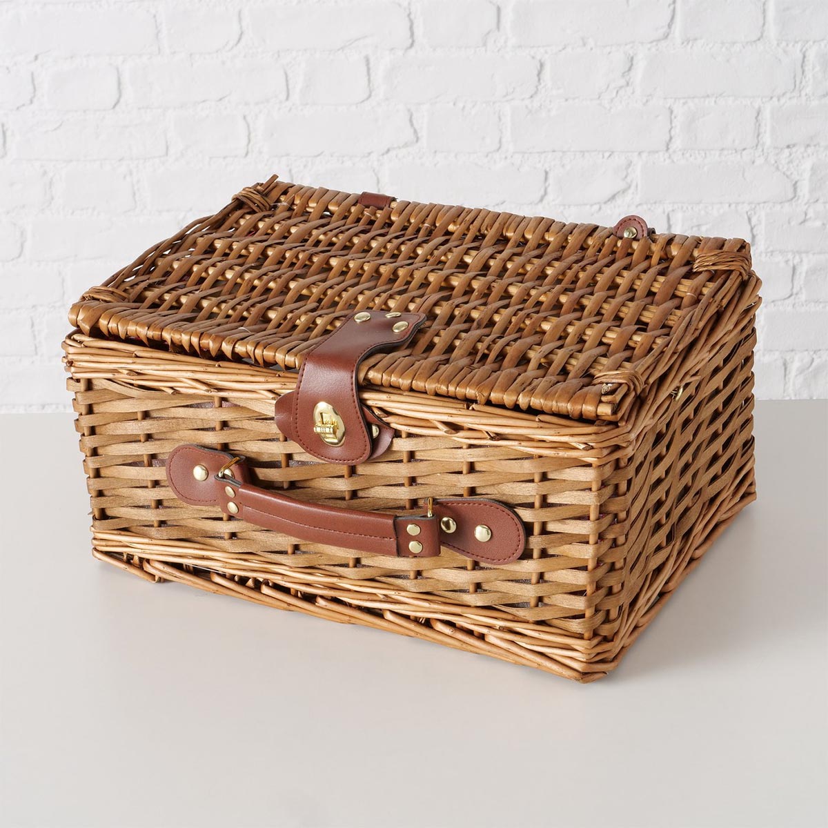 FeineHeimat Picknickkorb Darcel 13-teilig aus Weide (Salix) mit Drehverschluss – Perfekt für stilvolle Picknicks