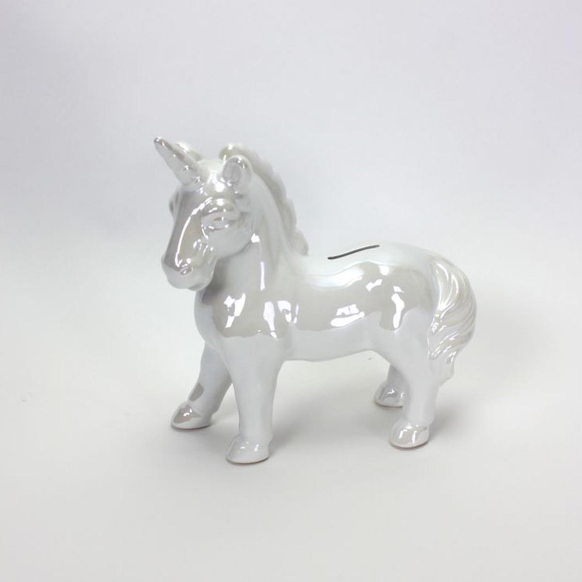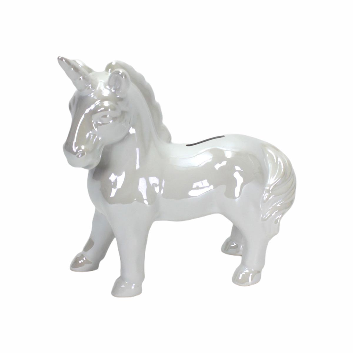 Die FeineHeimat Spardose in Form eines bezaubernden Einhorns ist nicht nur ein niedliches Accessoire, sondern auch ein praktisches Utensil zum Sparen. Gefertigt aus hochwertiger Keramik und in strahlendem Weiß gehalten, fügt sich die Sparbüchse perfekt in jedes Kinderzimmer oder in eine märchenhafte Dekoration ein. Mit einer Größe von etwa 22 x 24 cm bietet sie ausreichend Platz für Münzen und Scheine. Das Einhornmotiv bringt nicht nur Kinderaugen zum Leuchten, sondern eignet sich auch als Geschenk für Einhornliebhaber jeden Alters. Durch die robuste Keramikkonstruktion ist die Sparbüchse langlebig und sorgt für langanhaltende Freude. Ein praktisches und zauberhaftes Accessoire für kleine und große Sparfüchse, das nicht nur Geld sammelt, sondern auch das Herz berührt.