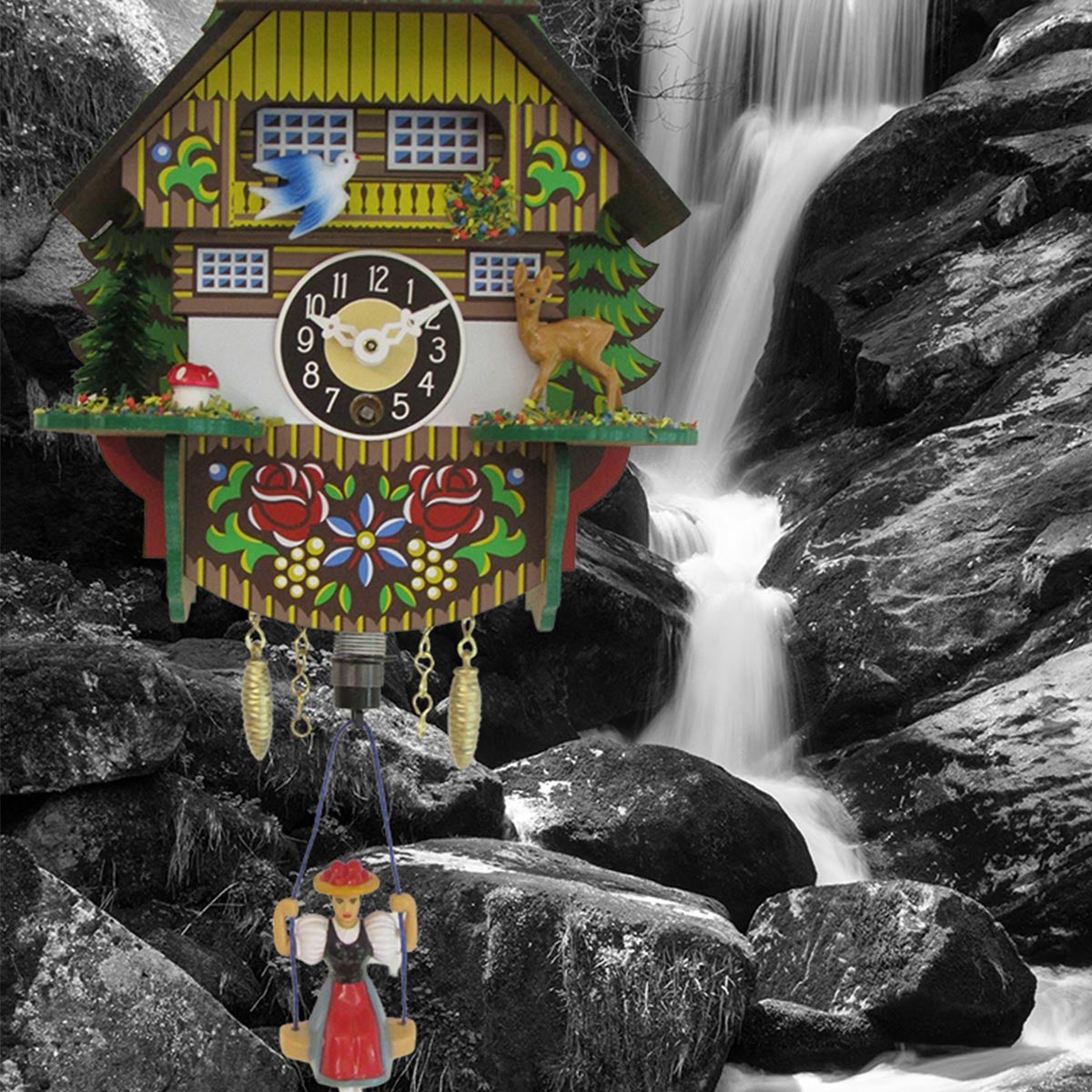 2. Schwarzwald Haus Design: Die Uhr ist mit einem charmanten Schwarzwald Haus gestaltet, das den rustikalen und traditionellen Charakter dieser Region einfängt. Ein liebevoll gestaltetes Miniaturhaus wird zum Zentrum dieser Uhr.