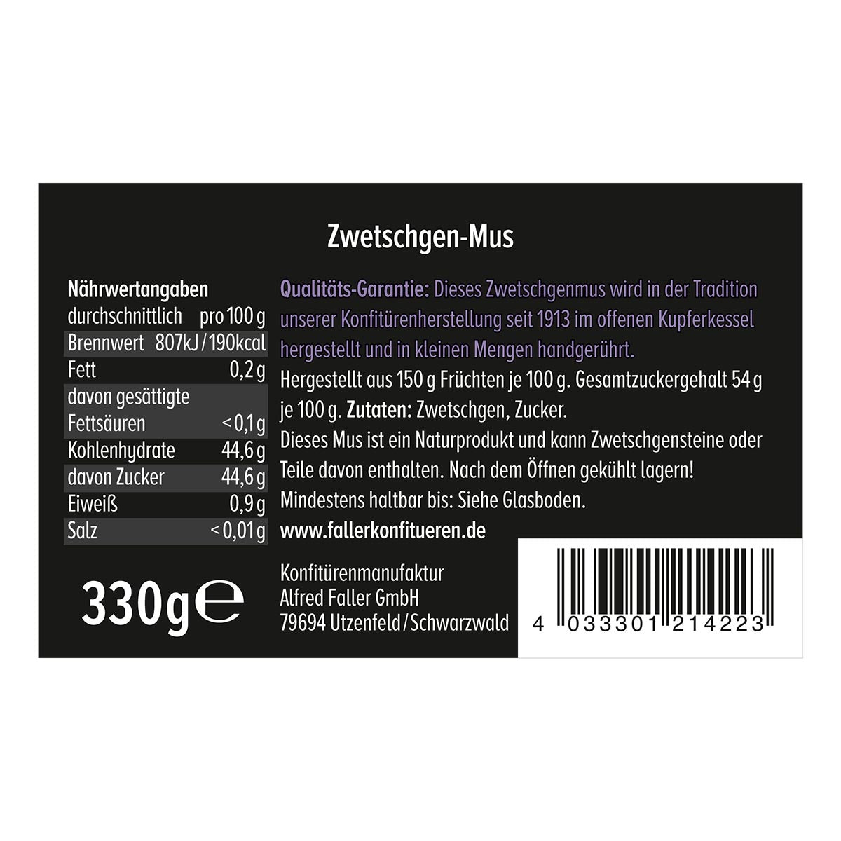 Die Fruchtaufstriche von Faller aus dem Schwarzwald sind ein echtes Geschmackserlebnis, das Sie nicht verpassen sollten! Das Faller Zwetschgen-Mus wird nach traditionellen Rezepten hergestellt und schmeckt genauso köstlich wie hausgemacht. Jedes Glas enthält 330 Gramm fruchtigen Genuss, der Ihren Gaumen verwöhnt.