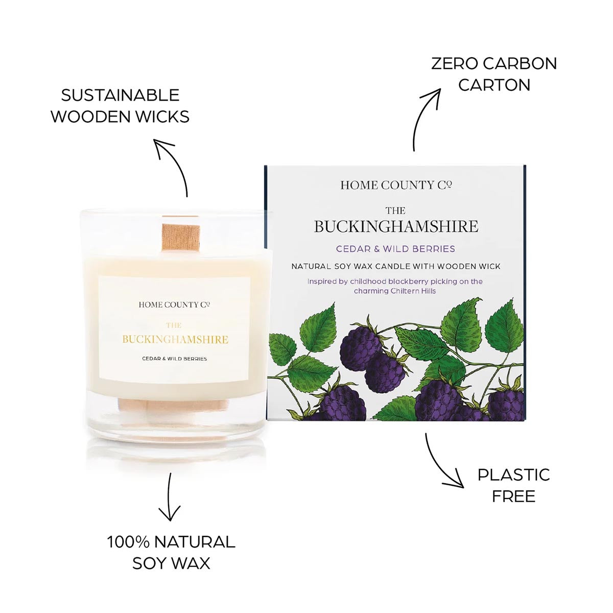 The Home County Candle Co. sind so begeistert von der Fülle an außergewöhnlicher natürlicher Schönheit, die es in Großbritannien zu genießen gibt, und setzen sich daher dafür ein, nachhaltige Produkte mit minimalen Auswirkungen auf die Umwelt herzustellen. Ihre Kerzen werden aus natürlichem Sojawachs hergestellt, das biologisch abbaubar und vegan-freundlich ist, und alle Verpackungen sind recycelbar und stammen aus nachhaltigen Quellen.