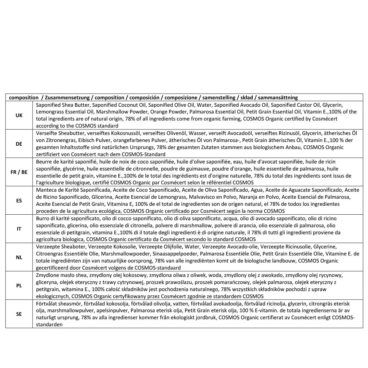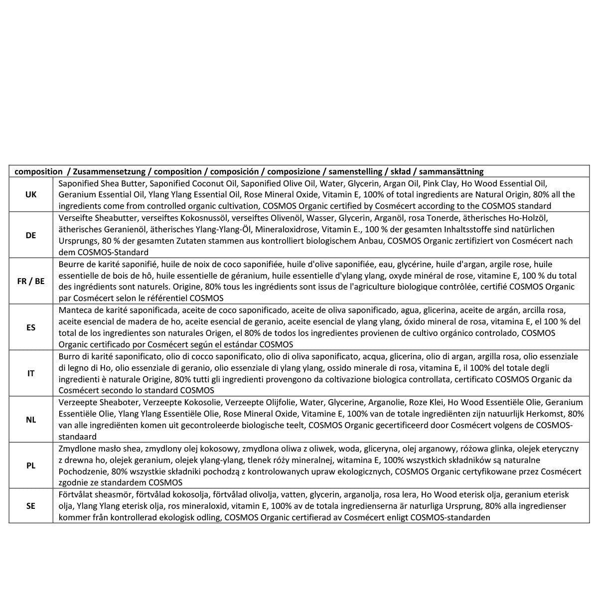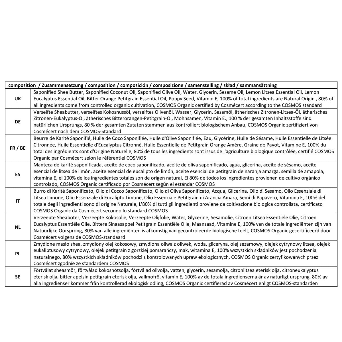 - Sie sind von Cosmécert gemäß dem COSMOS-Standard als biologisch zertifiziert und haben die Erwähnung von Slow Cosmetics erhalten.