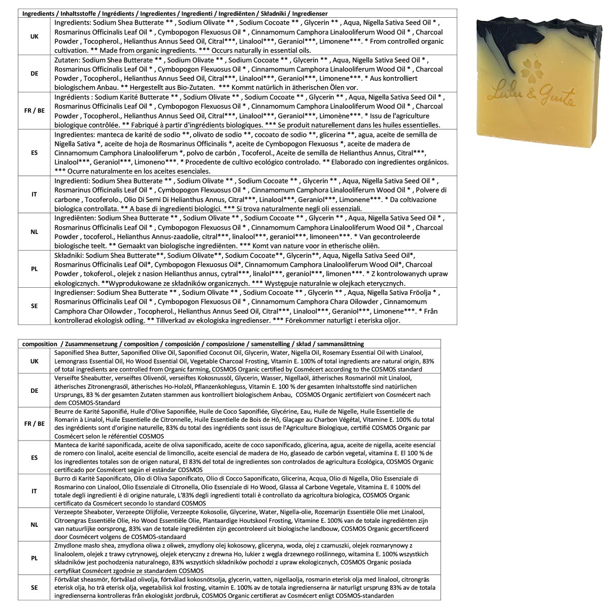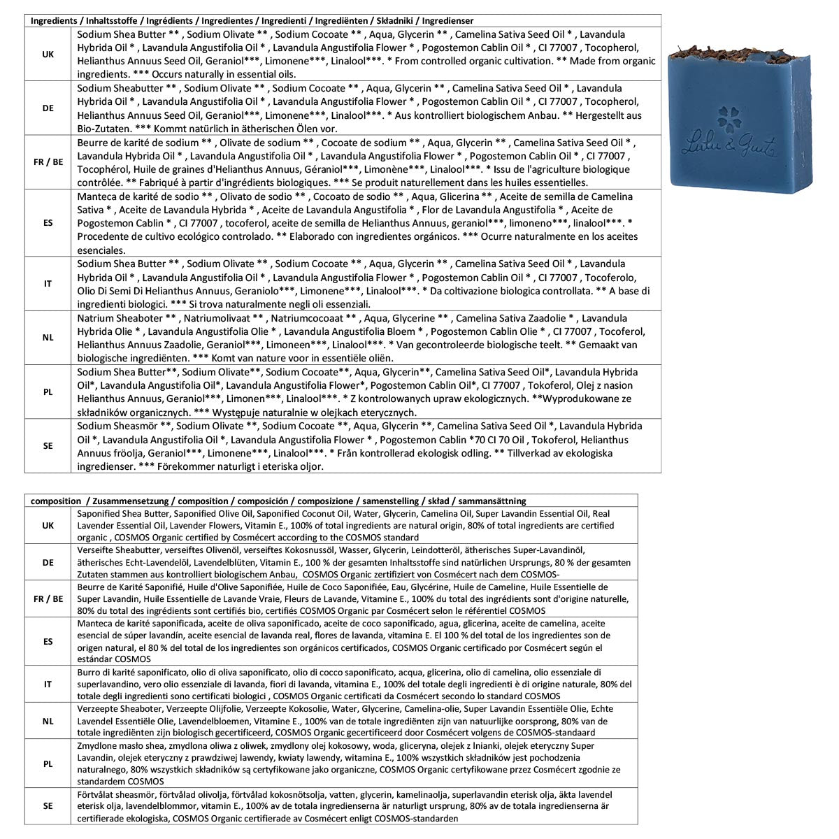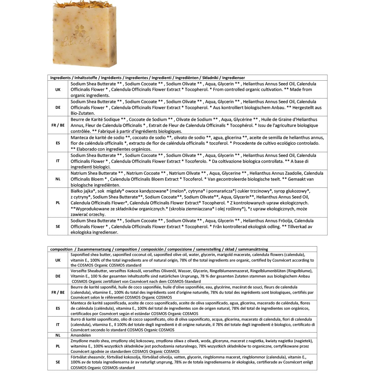 - Sie sind von Cosmécert gemäß dem COSMOS-Standard als biologisch zertifiziert und haben die Erwähnung von Slow Cosmetics erhalten.