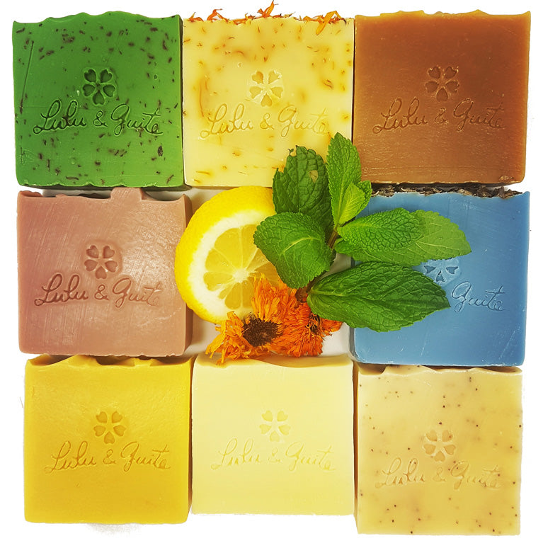 Im Gegensatz zu aggressiven Duschgels und herkömmlichen Industrieseifen haben die handgemachten natürlichen Kaltseifen von Lulu & Guite folgende Vorteile: