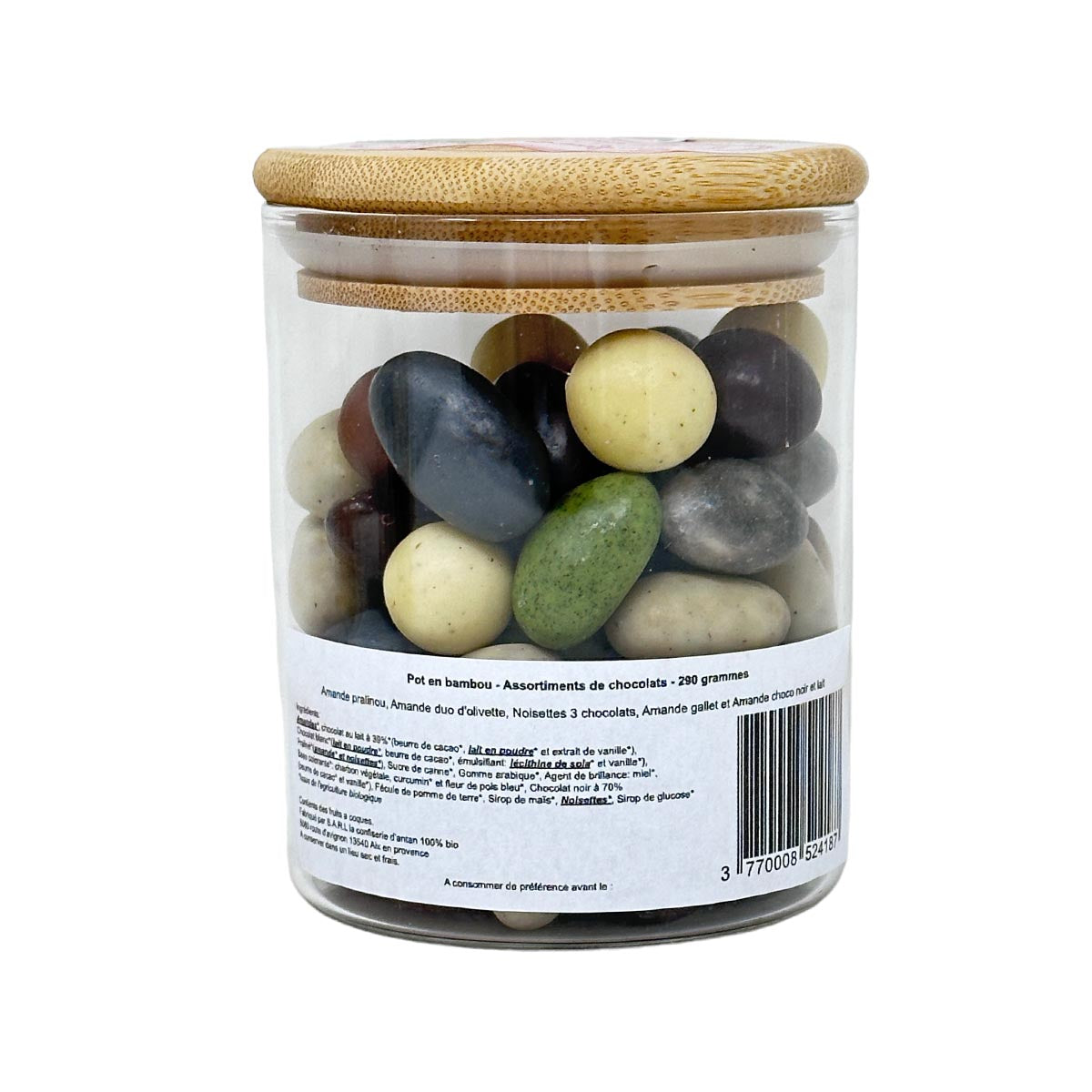 Die Bio Schokoladen-Knusperkugel Variationen von La Confiserie d'Antan sind nicht nur eine Freude für Ihren Gaumen, sondern auch eine Verpflichtung zur Nachhaltigkeit und zum Umweltschutz. Die Dose mit Bambusdeckel ist nicht nur eine stilvolle Verpackung, sondern auch eine umweltfreundliche Alternative, die dazu beiträgt, den Plastikverbrauch zu reduzieren.