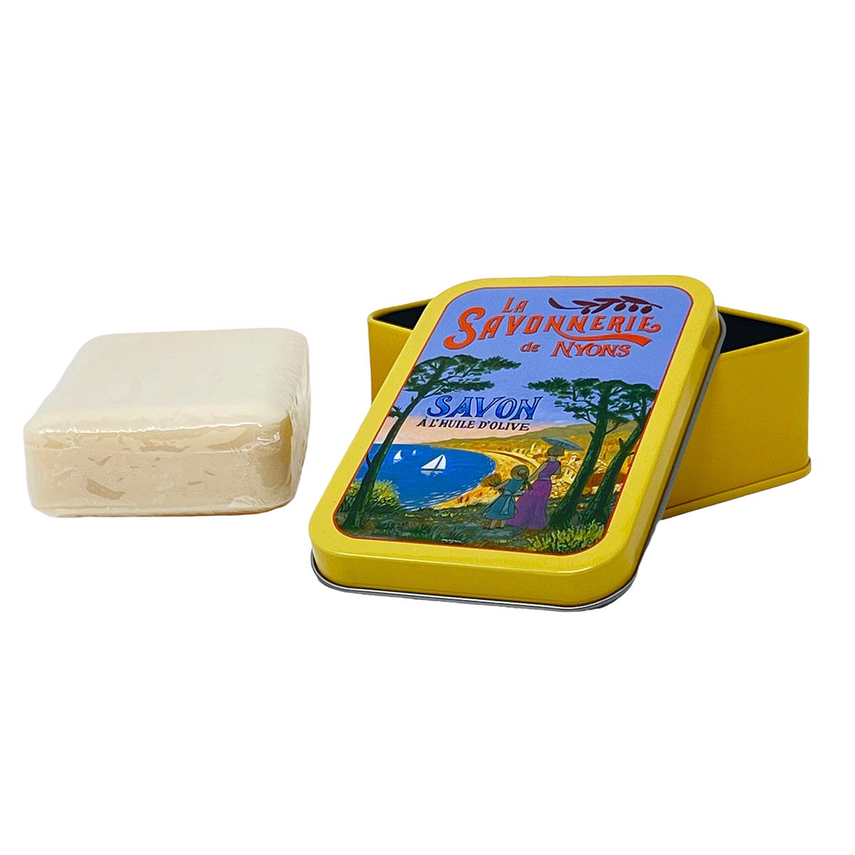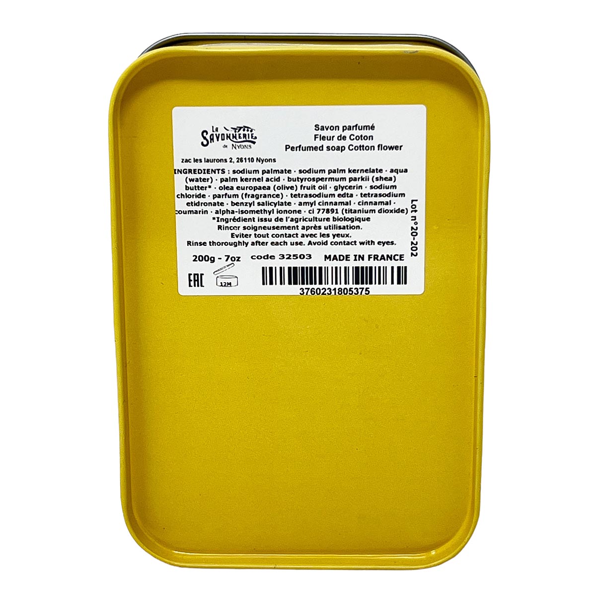 Entdecken Sie luxuriöse Hautpflege mit La Savonnerie De Nyons Seife in der Metalldose - inspiriert von der Côte d'Azur Baumwollblüte!