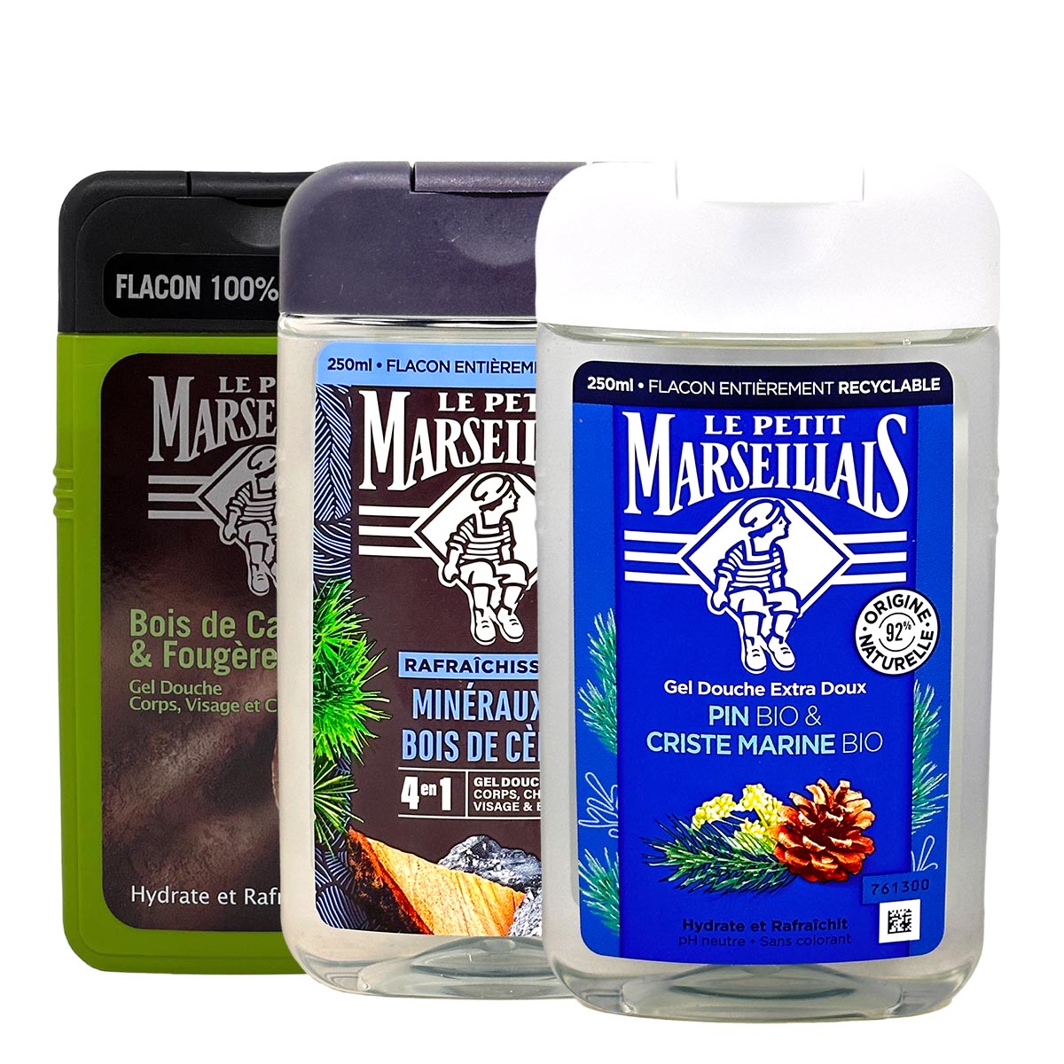 Genießen Sie eine erfrischende Dusche mit dem Le Petit Marseillais Duschgel 3er Set "Herren". Jede Duftnote bietet ein unverwechselbares Duft- und Pflegeerlebnis für den modernen Mann.