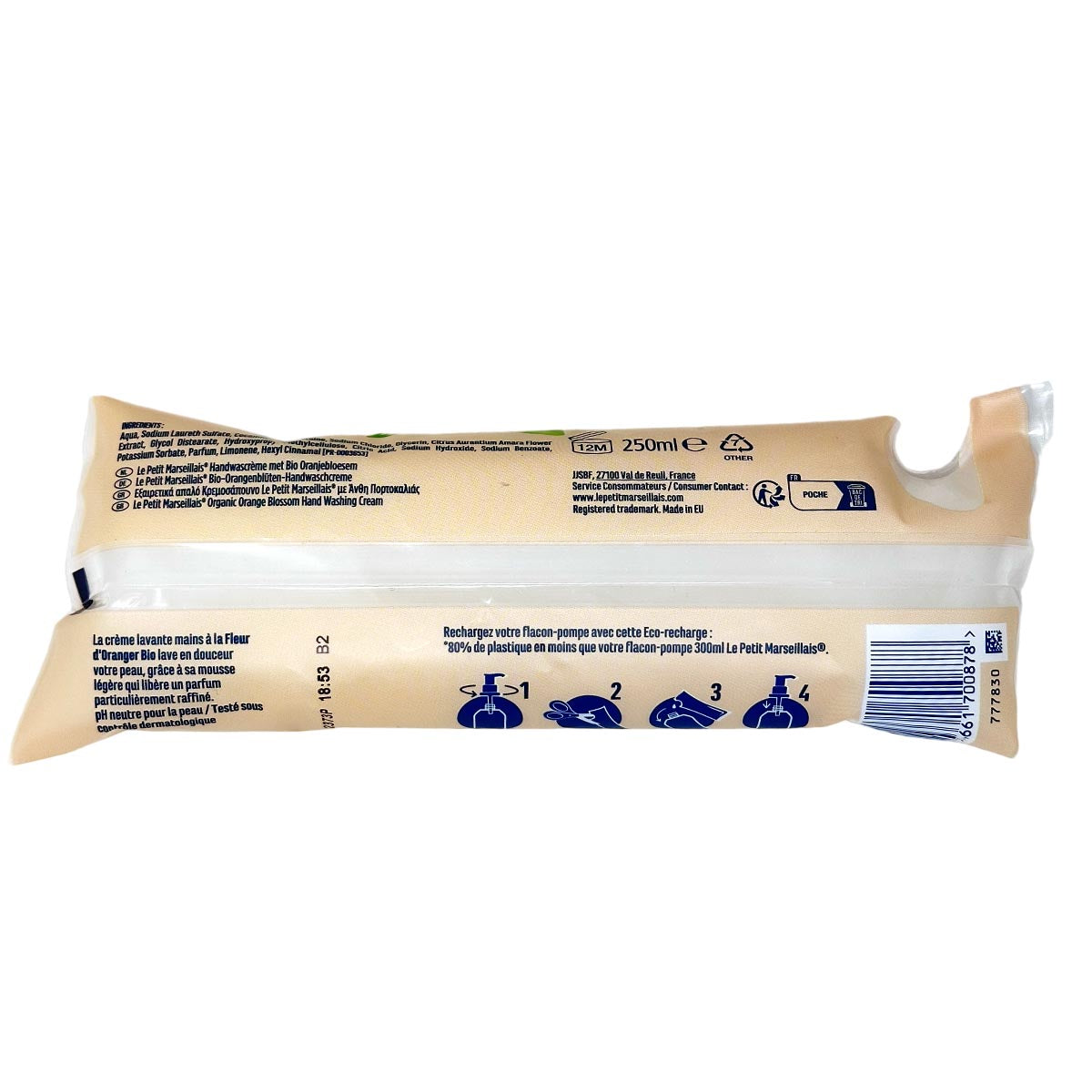 Erleben Sie die erfrischende Wirkung von Le Petit Marseillais Gel Seife mit Orangenblüten, präsentiert in einem praktischen 250-ml-Nachfüllpack aus Frankreich.