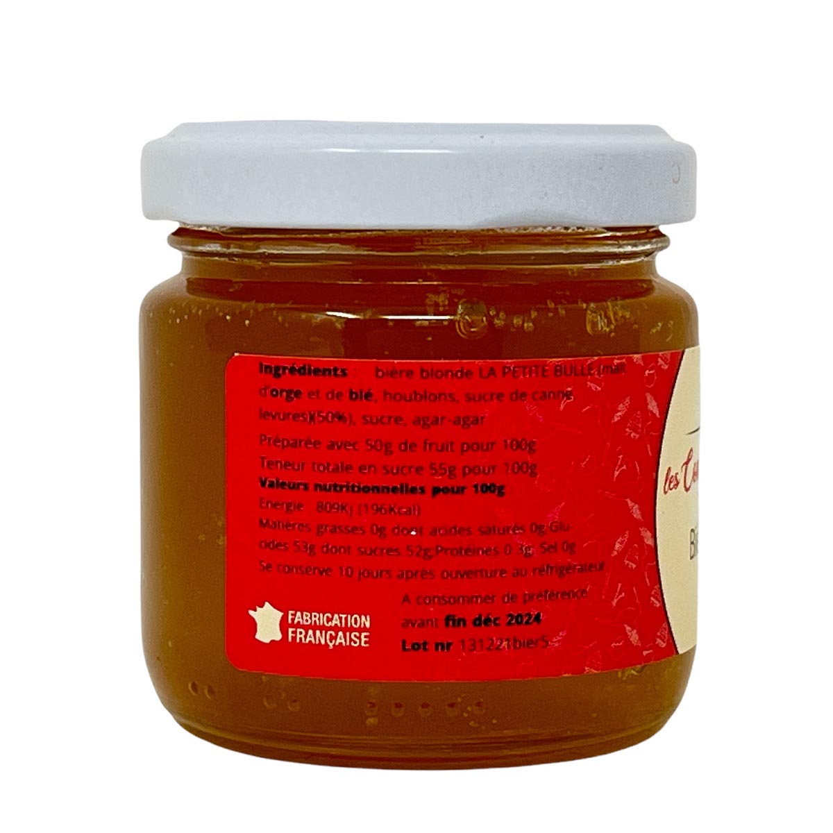 Leckeres Biergelee, hergestellt aus einem handwerklich gebrauten, regionalen Lagerbier von LA PETITE BULLE. Wenn Sie dieses Gelee probieren, erleben Sie den guten Geschmack von Hopfen mit einem süßen Touch, der an Honig erinnert. Genießen Sie das Gelee mit Käse, Foie Gras oder Brot.