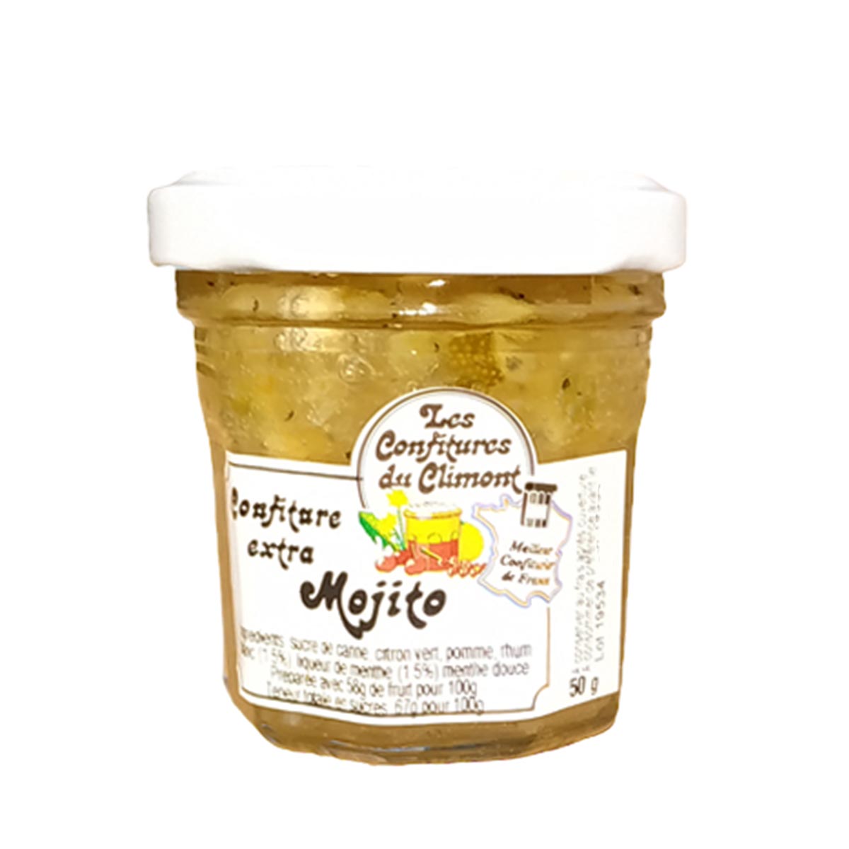 Die Konfitüre wird in praktischen 50g-Gläsern angeboten, perfekt für den Genuss zu Hause oder unterwegs. Verwöhnen Sie Ihren Gaumen mit dem exquisiten Geschmack dieser besonderen Kreation aus dem Elsass. Gönnen Sie sich ein Stück Sommer und lassen Sie sich von der Les Confitures du Climont Mojito Konfitüre verführen.