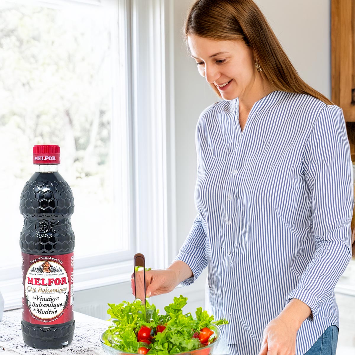 Der herausragende Vorteil von Melfor Plus doux liegt in seiner einzigartigen Milde. Im Vergleich zu herkömmlichem Essig bietet dieser Balsamessig ein sanfteres Geschmackserlebnis, das besonders gut zu empfindlichen Zutaten passt. Dies macht ihn ideal für den täglichen Gebrauch, ohne dass er den natürlichen Geschmack Ihrer Speisen überdeckt.