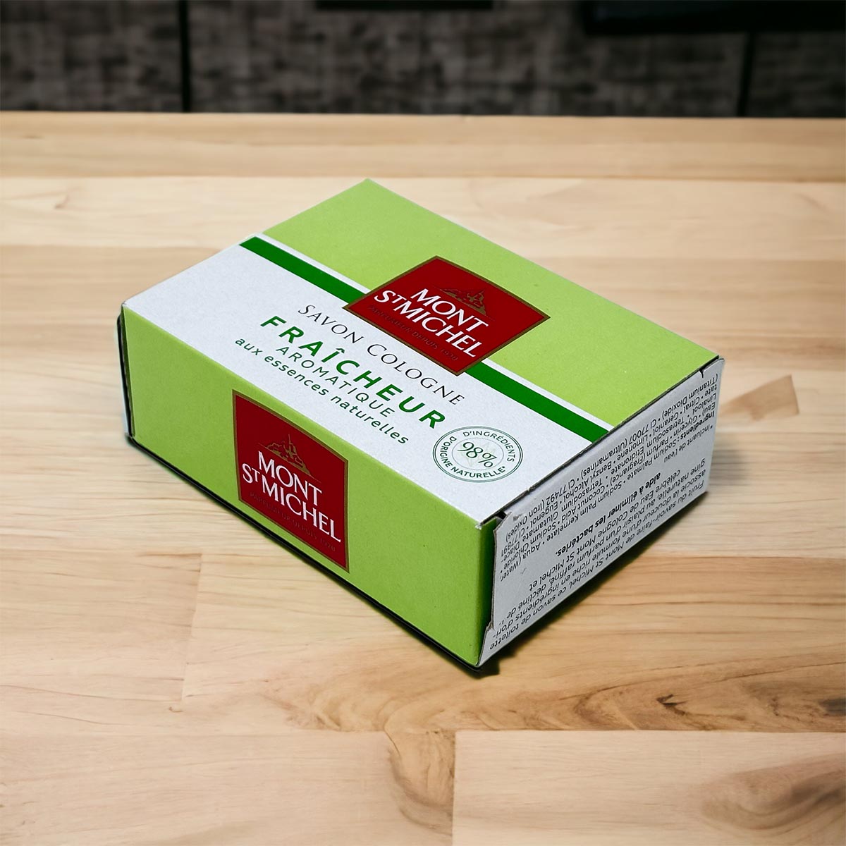 Erleben Sie die erfrischende Pflege und den eleganten Duft der Mont St. Michel Savon Cologne Fraicheur - eine Kölnisch Seife, die die Haut sanft reinigt und mit einem revitalisierenden Aroma umhüllt.
