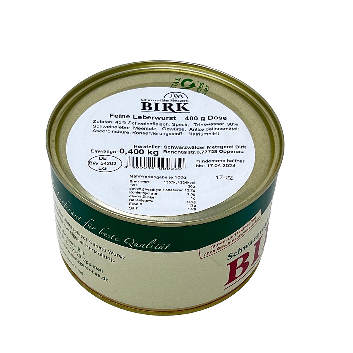 Genießen Sie den unverwechselbaren Geschmack und die traditionelle Qualität der Schwarzwälder Metzgerei Birk mit unserer Dosenwurst Feine Leberwurst. Entdecken Sie den traditionellen Genuss der Schwarzwälder Küche, direkt aus eigener Herstellung.