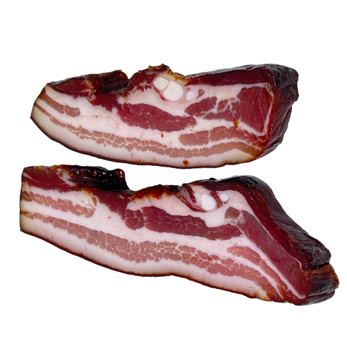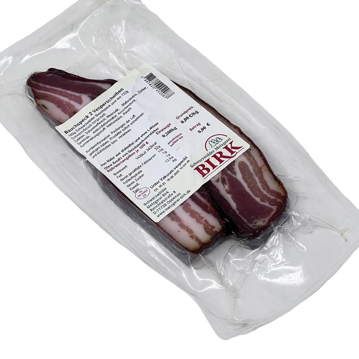 Inhalt: 2 Stck. Gramm Schwarzwälder Vesperspeck aus eigener Herstellung