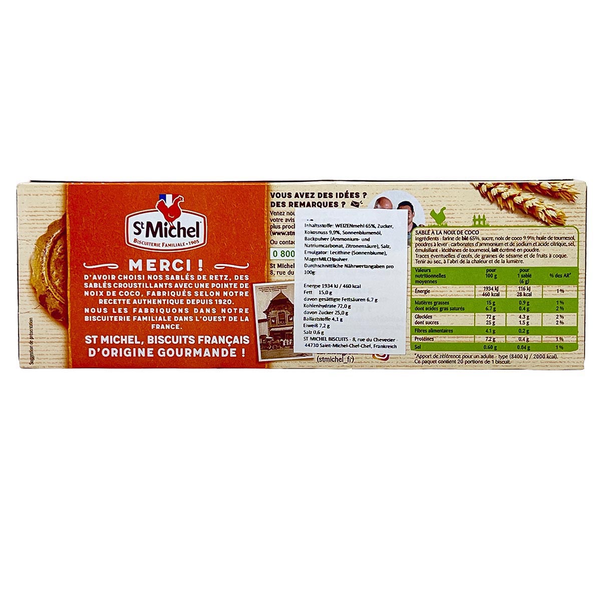 Traditionelles Rezept: Das Geheimnis ihres unvergleichlichen Geschmacks liegt in der traditionellen Rezeptur, die seit Generationen in der Familie der Bäckermeister von St Michel weitergegeben wird. Dieses bewährte Rezept sorgt dafür, dass jeder Keks eine perfekte Balance zwischen Süße und dem reichhaltigen Aroma der Kokosnuss bietet.