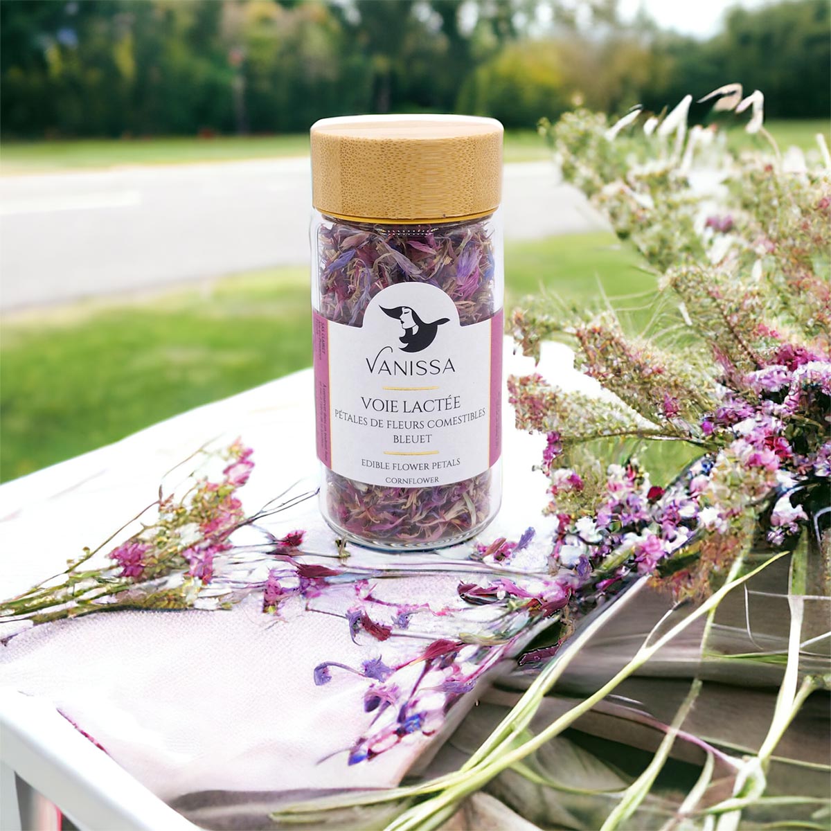 Einfache Aufbewahrung: Verpackt in einem praktischen Glasbehälter bleiben die Blütenblätter von Vanissa Milky Way lange frisch und aromatisch, sodass du sie jederzeit für deine kulinarischen Kreationen verwenden kannst.