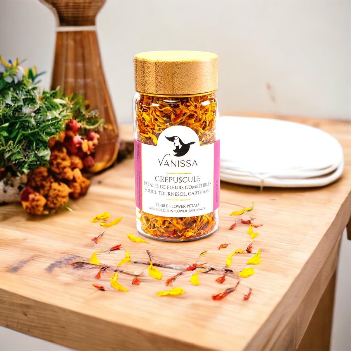 Das Auge isst mit! Während sich die meisten unserer Gewürze auf Gerüche, Geschmäcker und Texturen konzentrieren, ist es das Visuelle, das wir mit unseren Blütenmischungen betonen möchten: