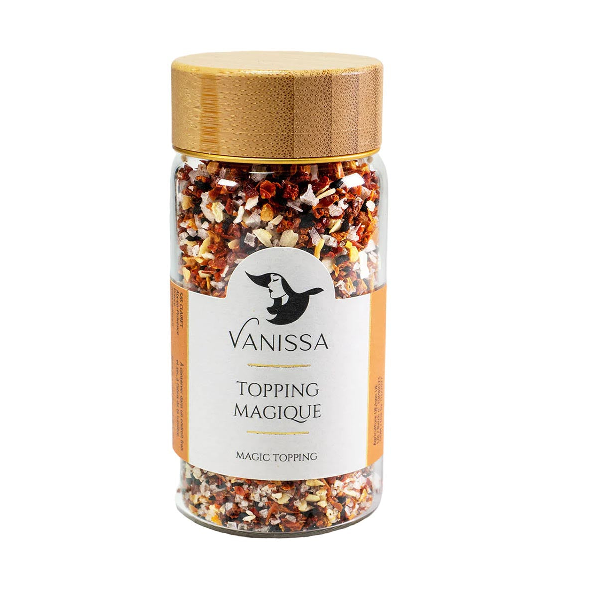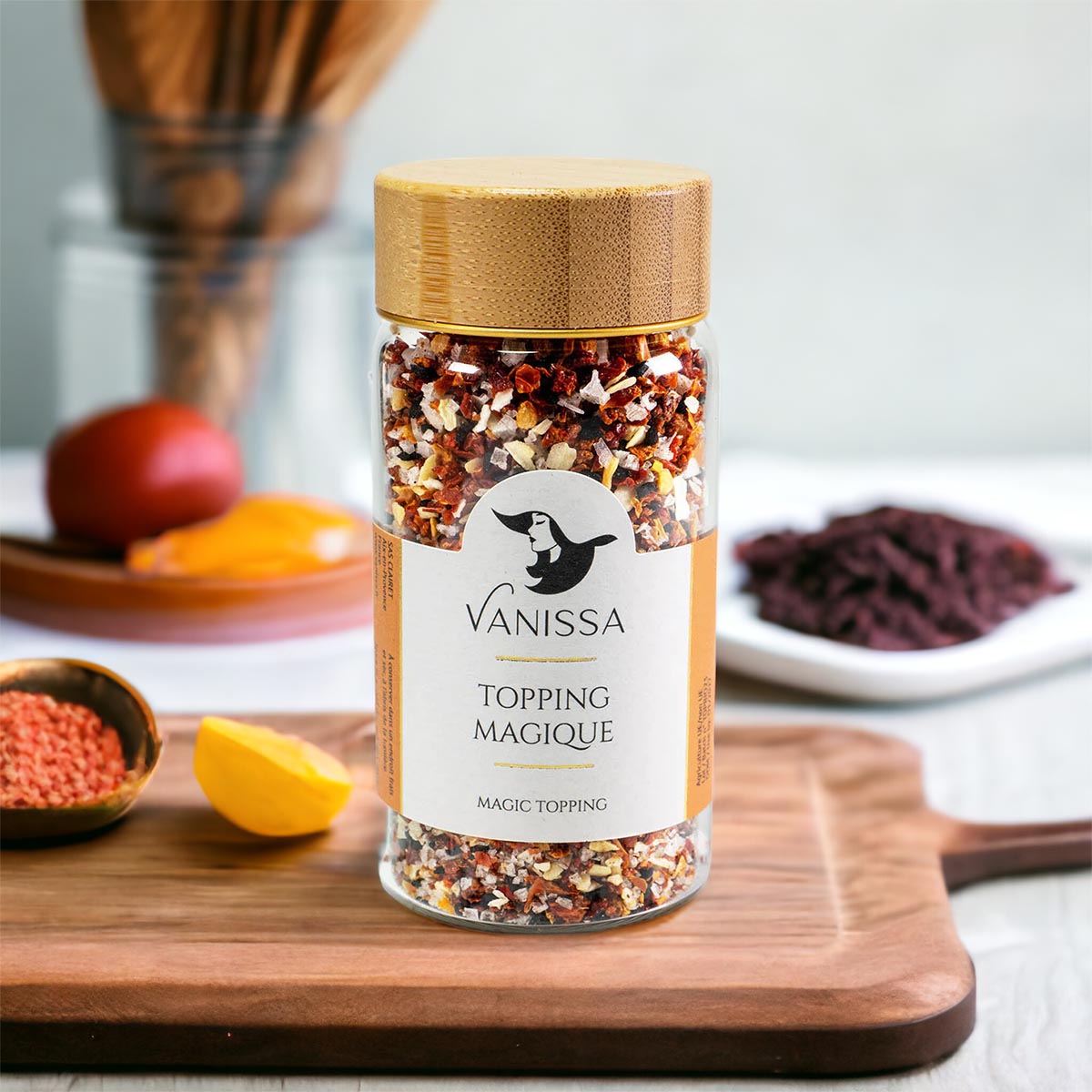 Genießen Sie den magischen Geschmack dieser außergewöhnlichen Gewürzmischung und verleihen Sie Ihren Gerichten eine besondere Note, die Ihre Gäste beeindrucken wird. Entdecken Sie die Vielseitigkeit und die kulinarischen Möglichkeiten von Vanissa Topping Magique und lassen Sie sich von seinem einzigartigen Geschmack verzaubern.